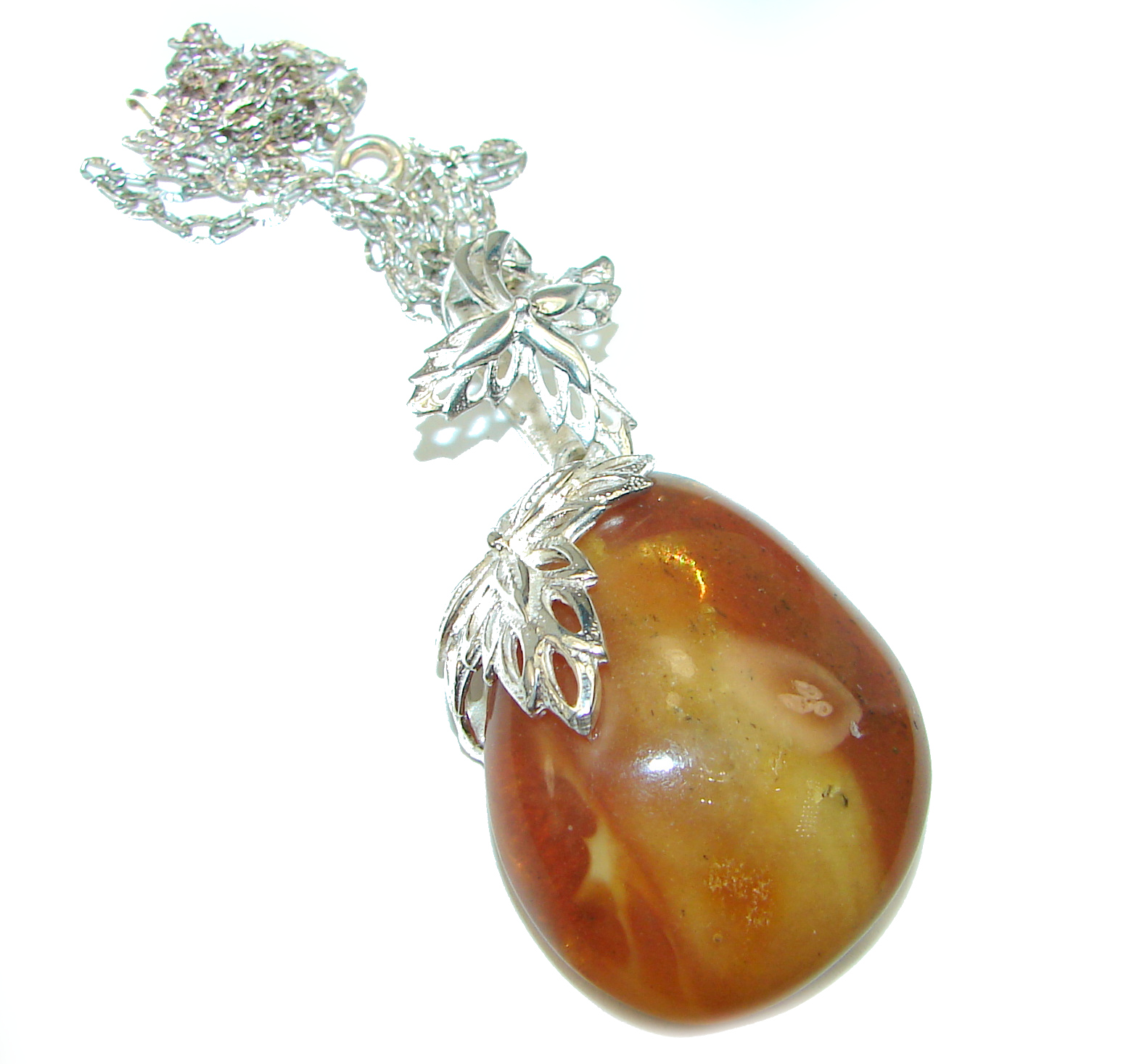 Huge Golden Baltic Amber .925 Sterling Silver handmade Pendant
