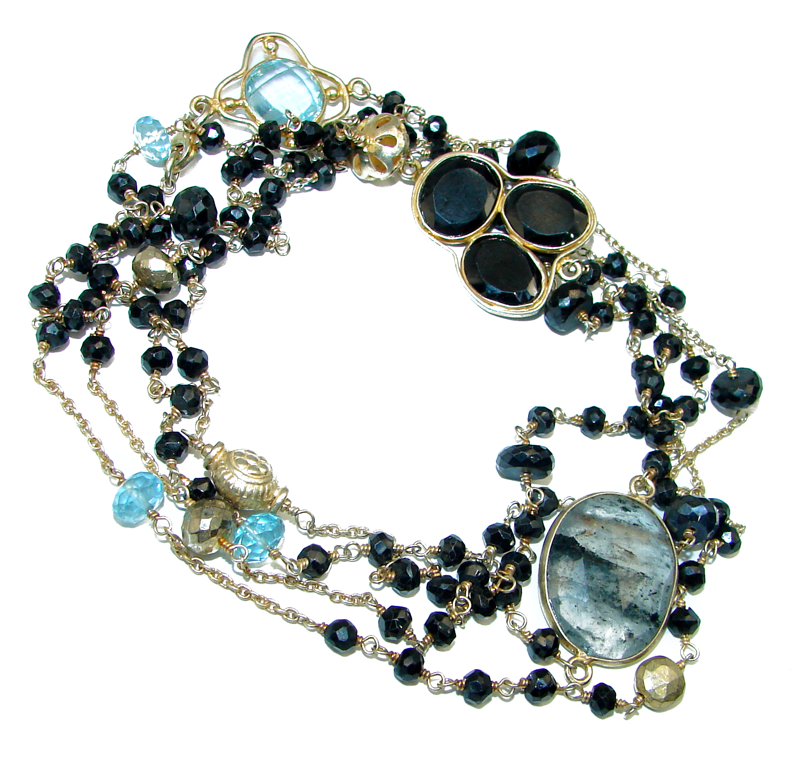44 inches authentic Onyx 14K Gold over .925 Sterling Silver handmade Station Necklace