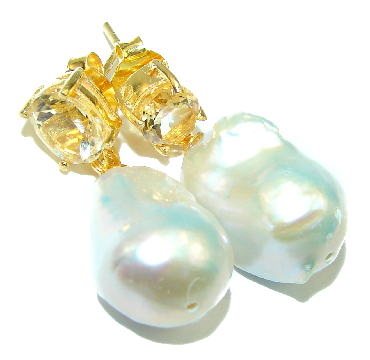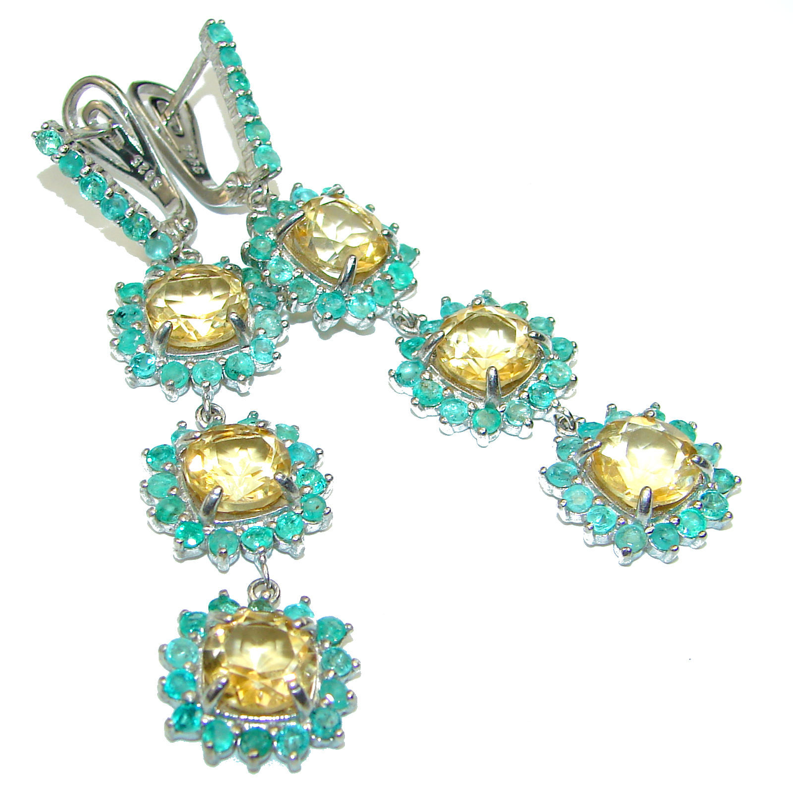 Luxurious Style Natural Citrine Emerald .925 Sterling Silver handmade earrings