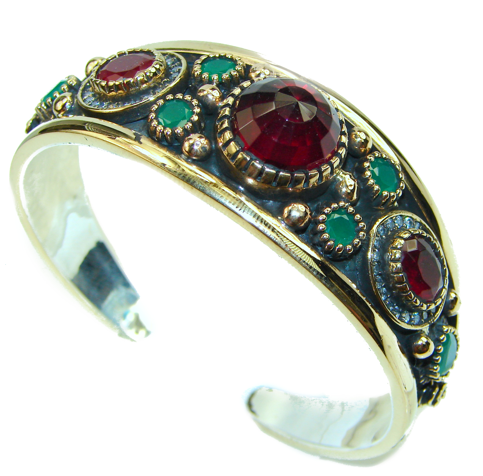 Victorian Style Created Ruby & White Topaz Sterling Silver Bracelet / Cuff