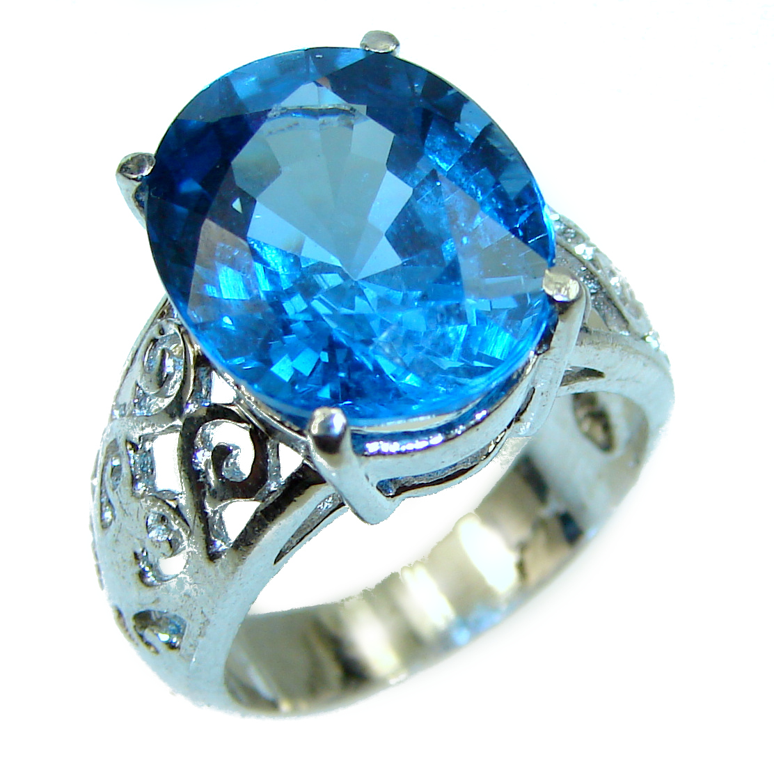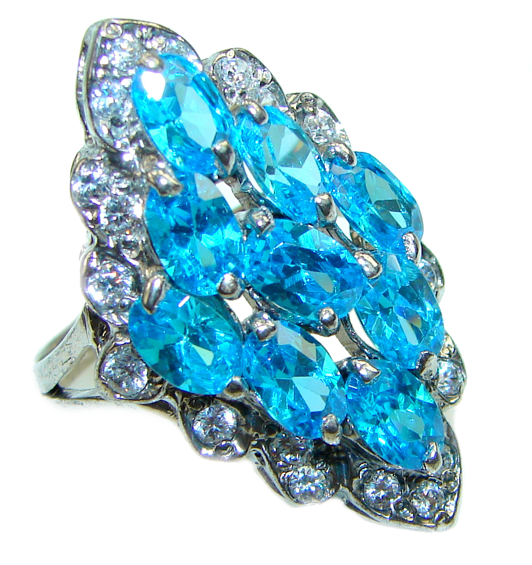 Authentic Swiss Blue Topaz .925 Sterling Silver handmade Ring size 7 1/4