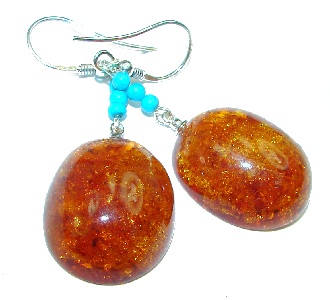 Baltic Polish Amber Turquoise .925 Sterling Silver Earrings