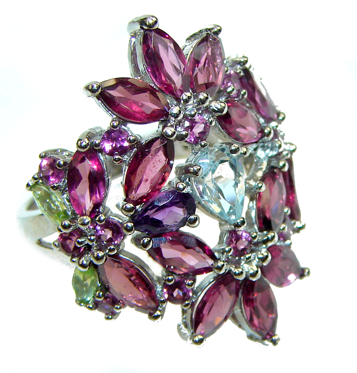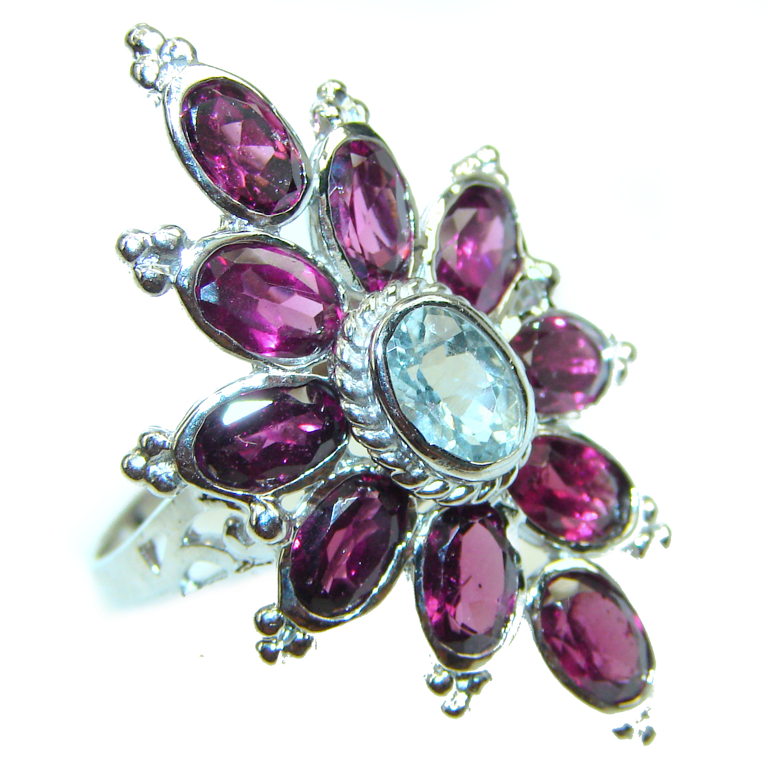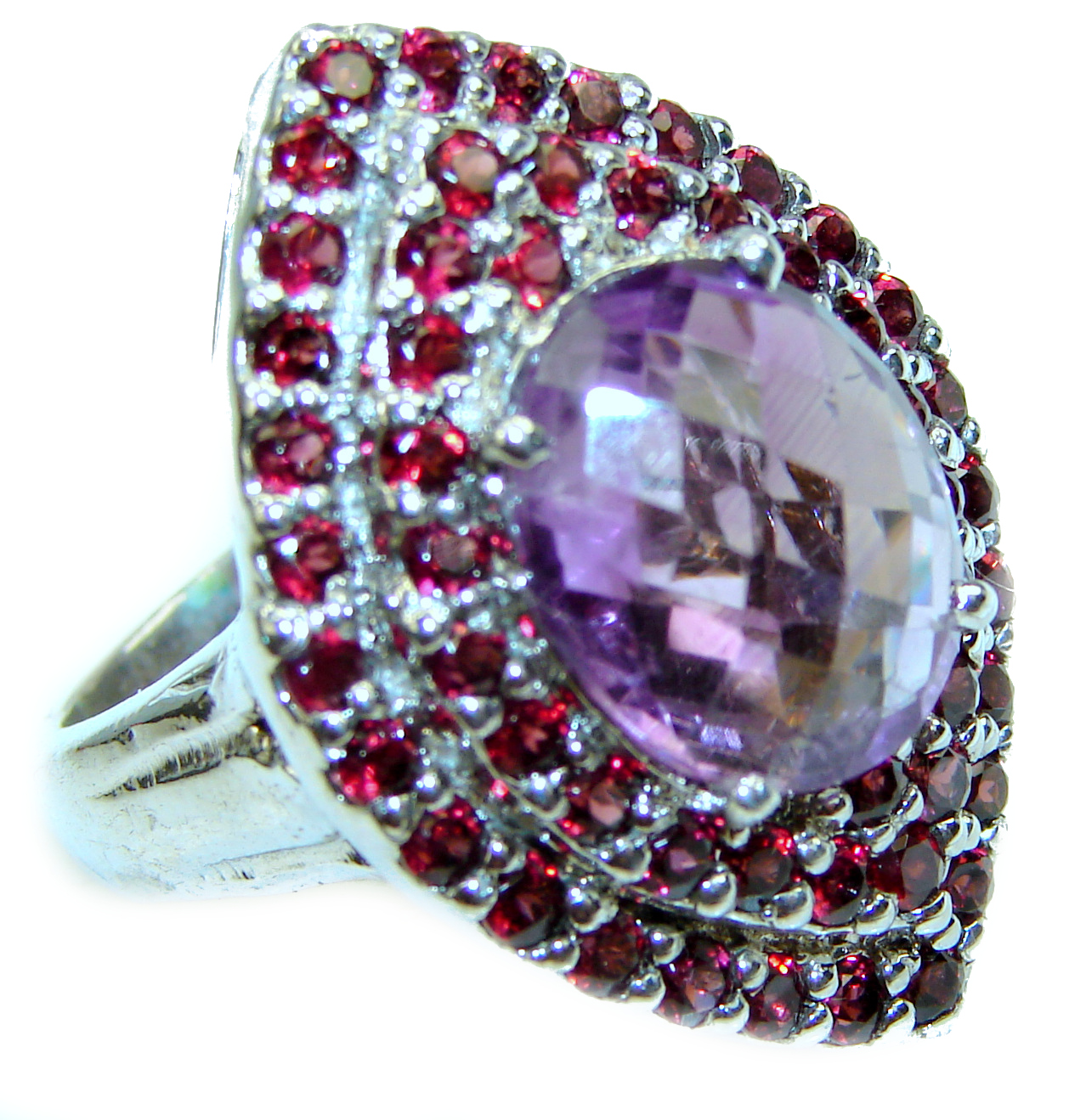 Spectacular genuine Amethyst Garnet .925 Sterling Silver Handcrafted Cocktail Ring size 8