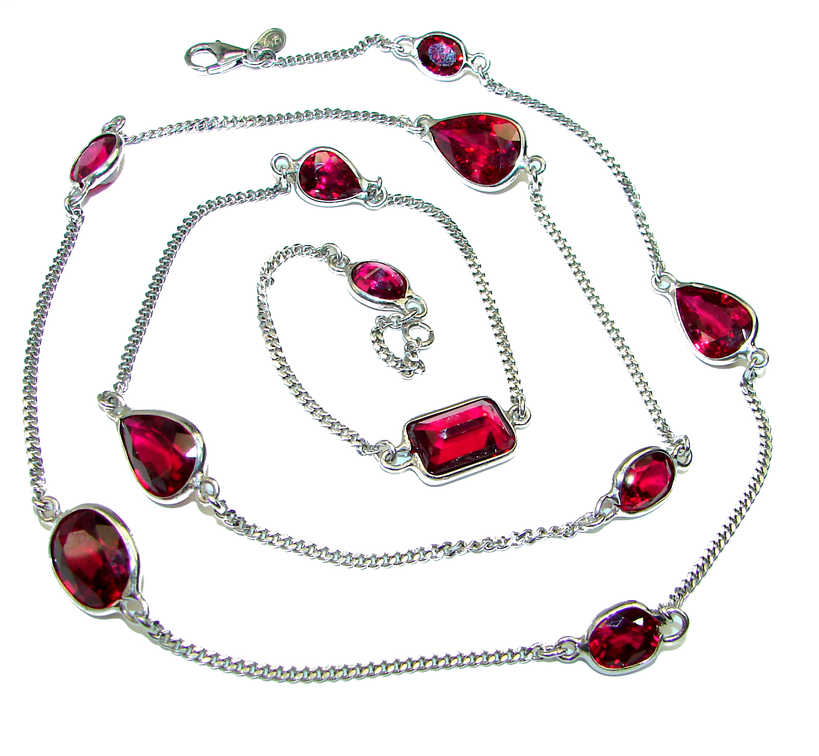 32 inches authentic Raspberry Red Topaz .925 Sterling Silver handmade Station Necklace