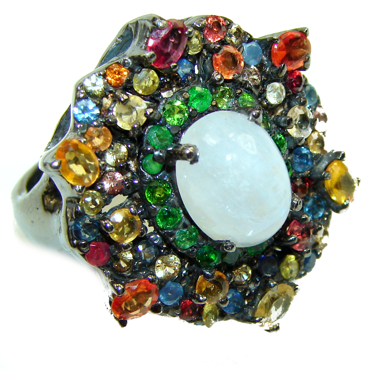 Best quality Genuine Fire Moonstone Sapphire black rhodium over .925 Sterling Silver handcrafted ring size 8 1/4