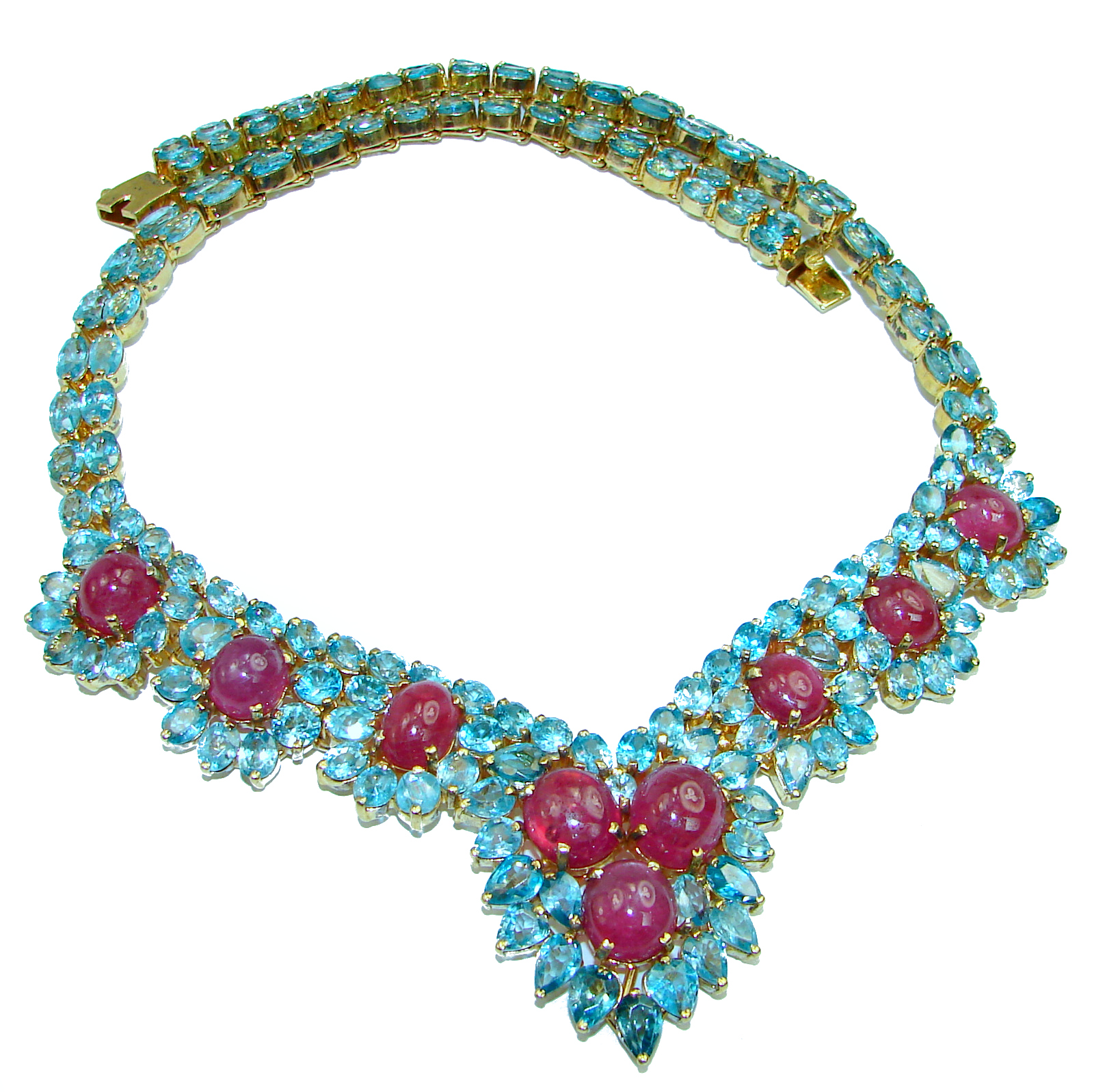 Bright Star authentic Ruby Swiss Blue Topaz 14K Gold over .925 Sterling Silver handcrafted necklace