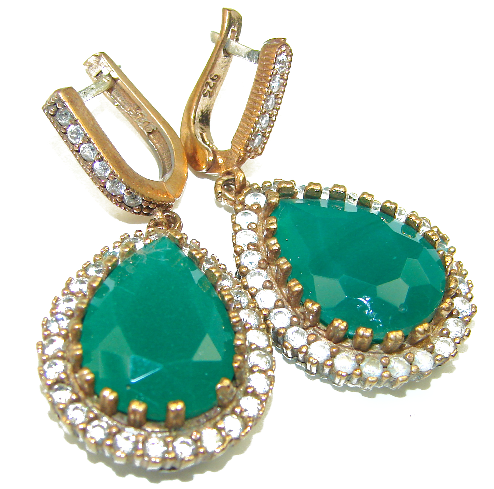 Spectacular created Emerald .925 Sterling Silver handcrafted earrings