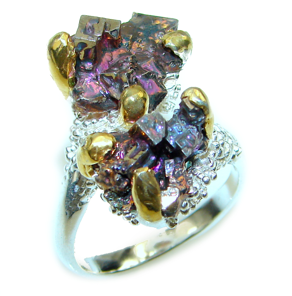 Natural Bismuth Crystal 14K Gold over .925 Sterling Silver handmade Ring size 9 1/2