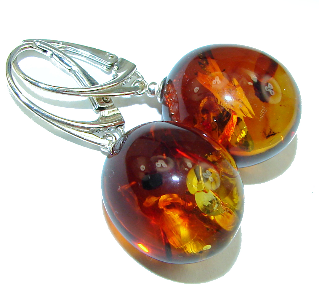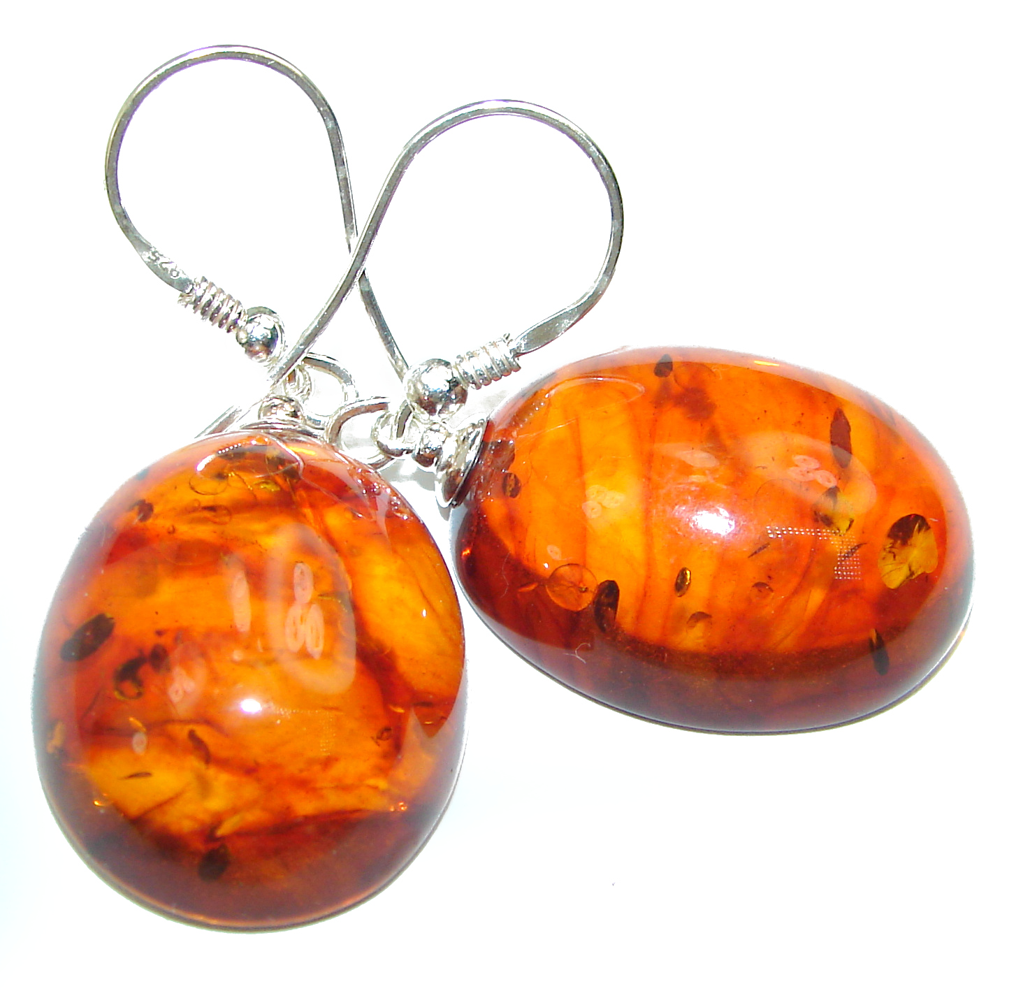 Huge Baltic Polish Amber .925 Sterling Silver Earrings
