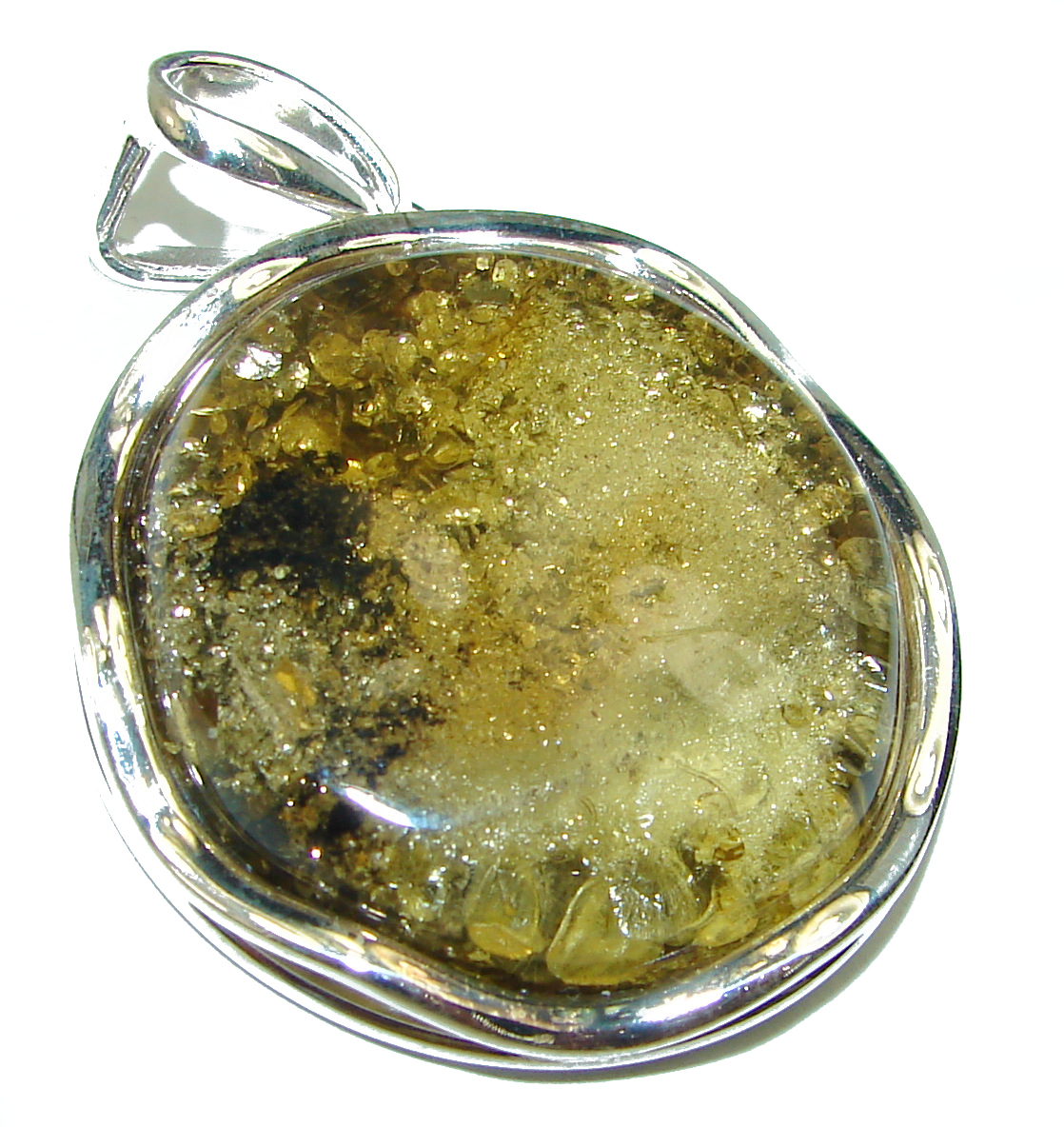 Natural Green Baltic Amber .925 Sterling Silver handmade Pendant