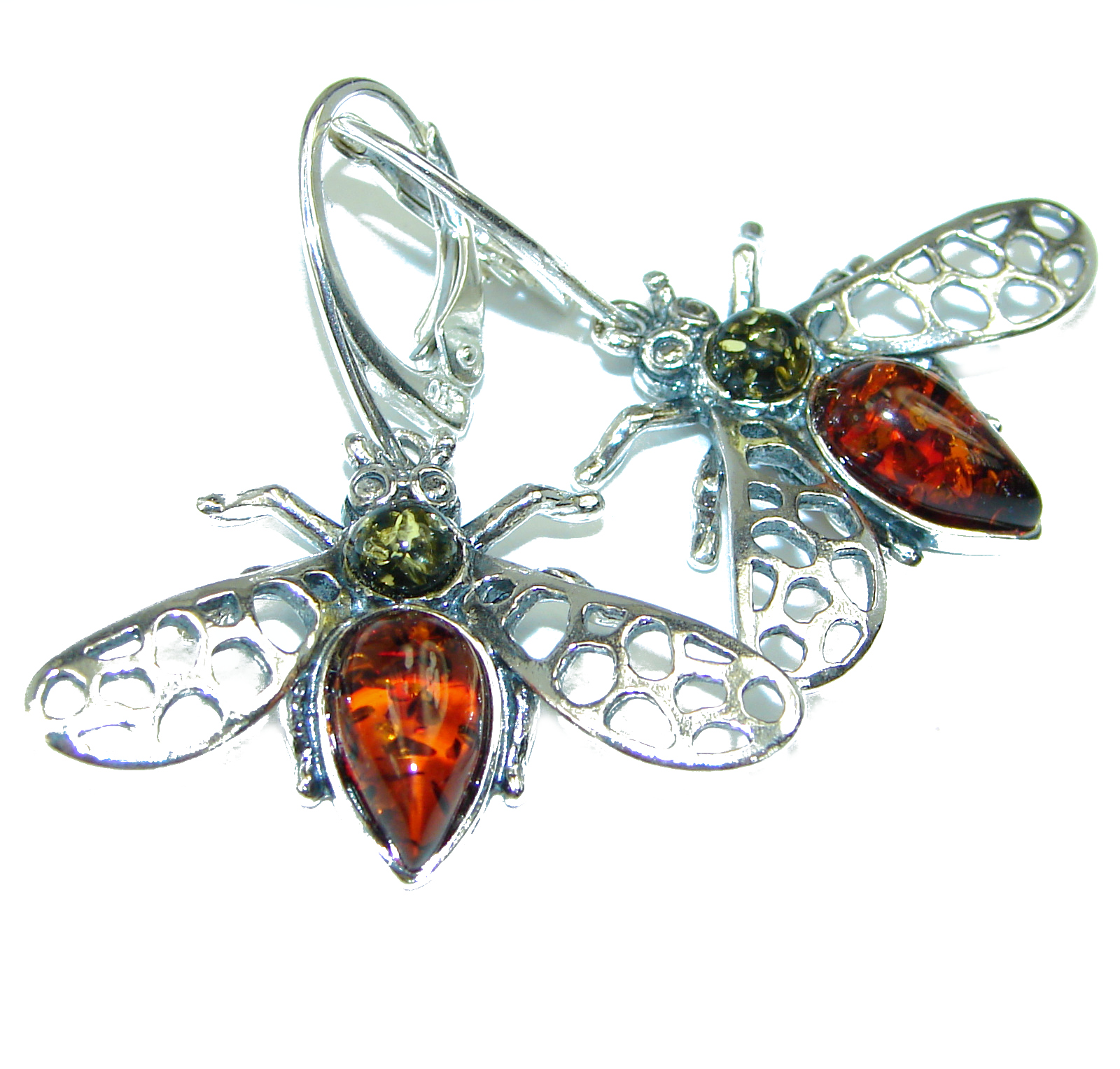 Wonderful Bees Baltic Mosaic Amber .925 Sterling Silver entirely handcrafted earrings