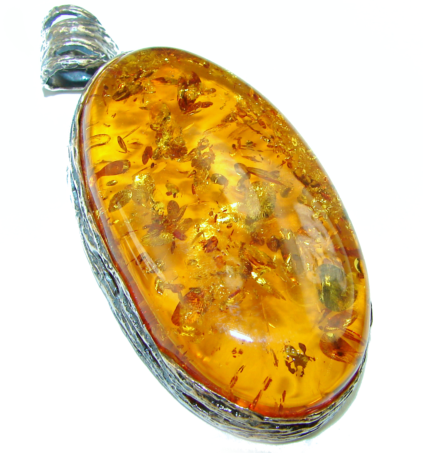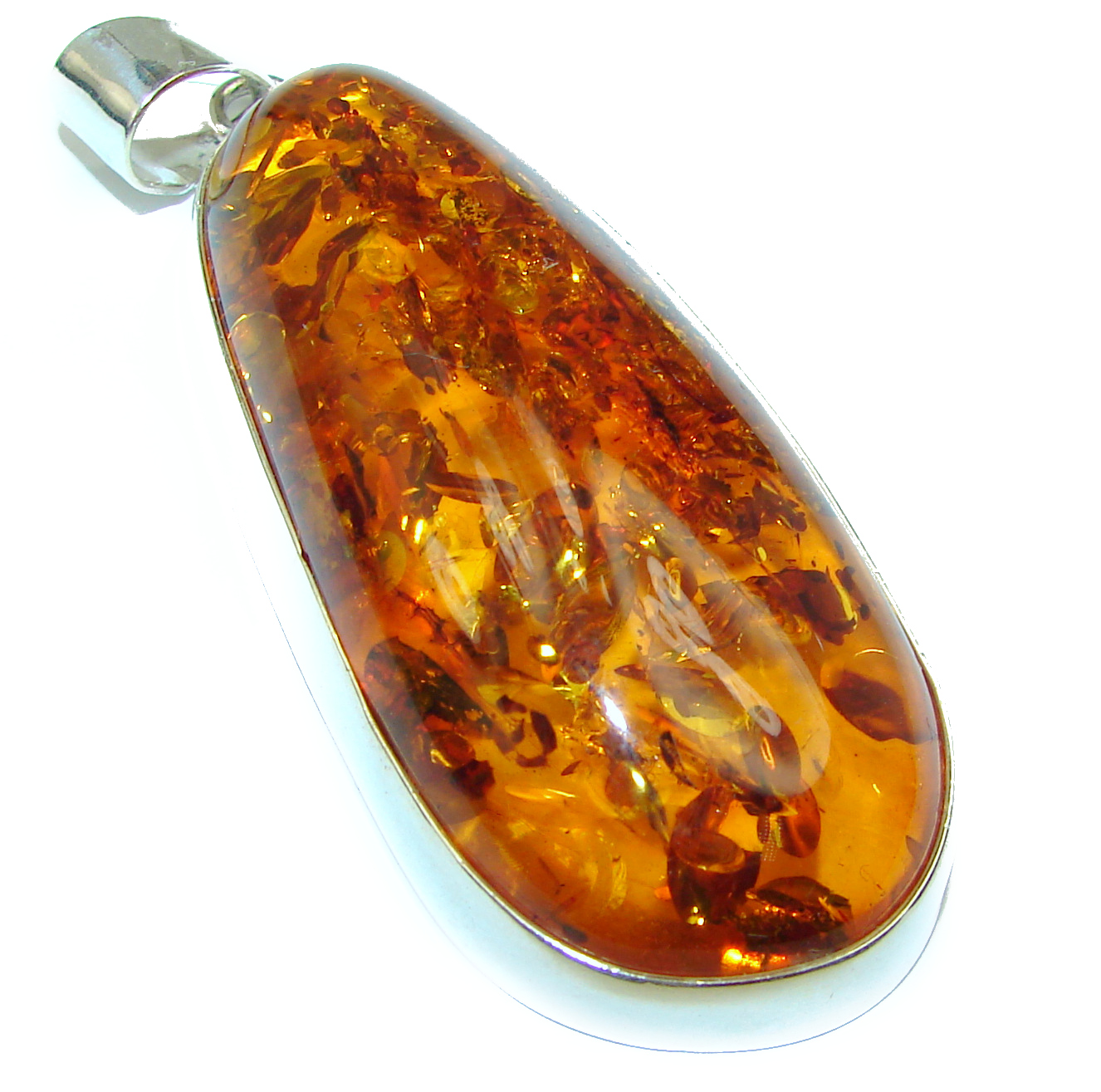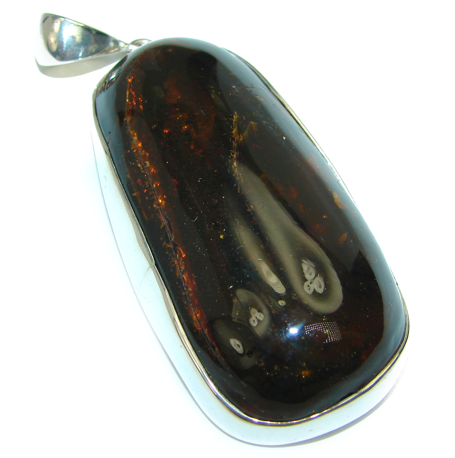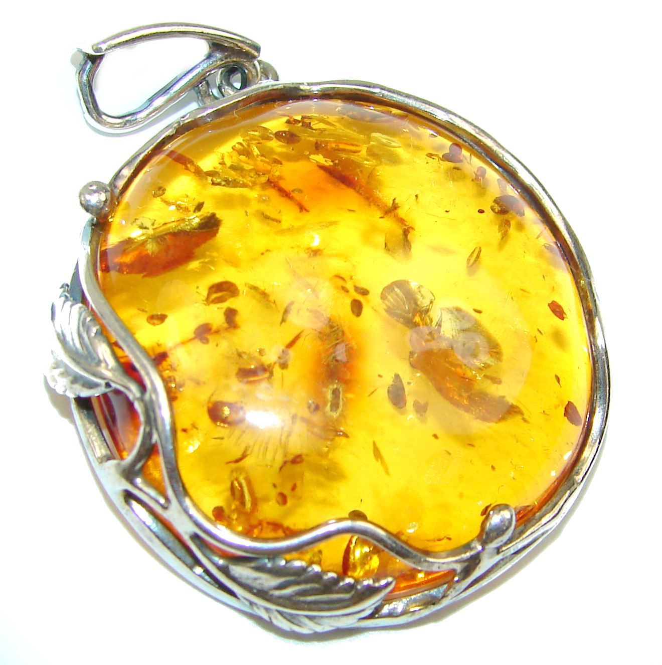 Huge 26.5 grams Natural Baltic Amber .925 Sterling Silver handmade Pendant