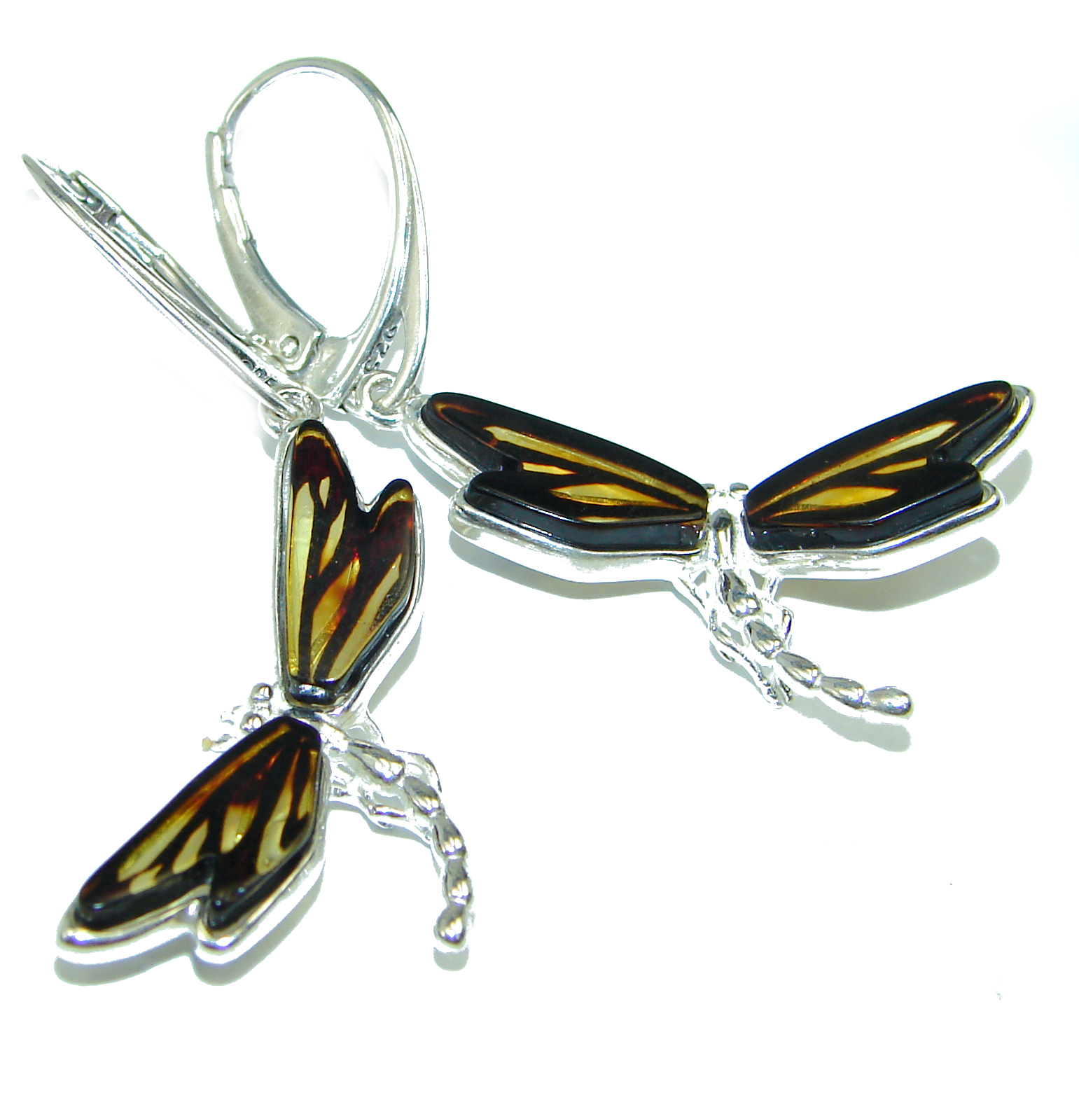 Butterflies Baltic Polish Amber .925 Sterling Silver earrings