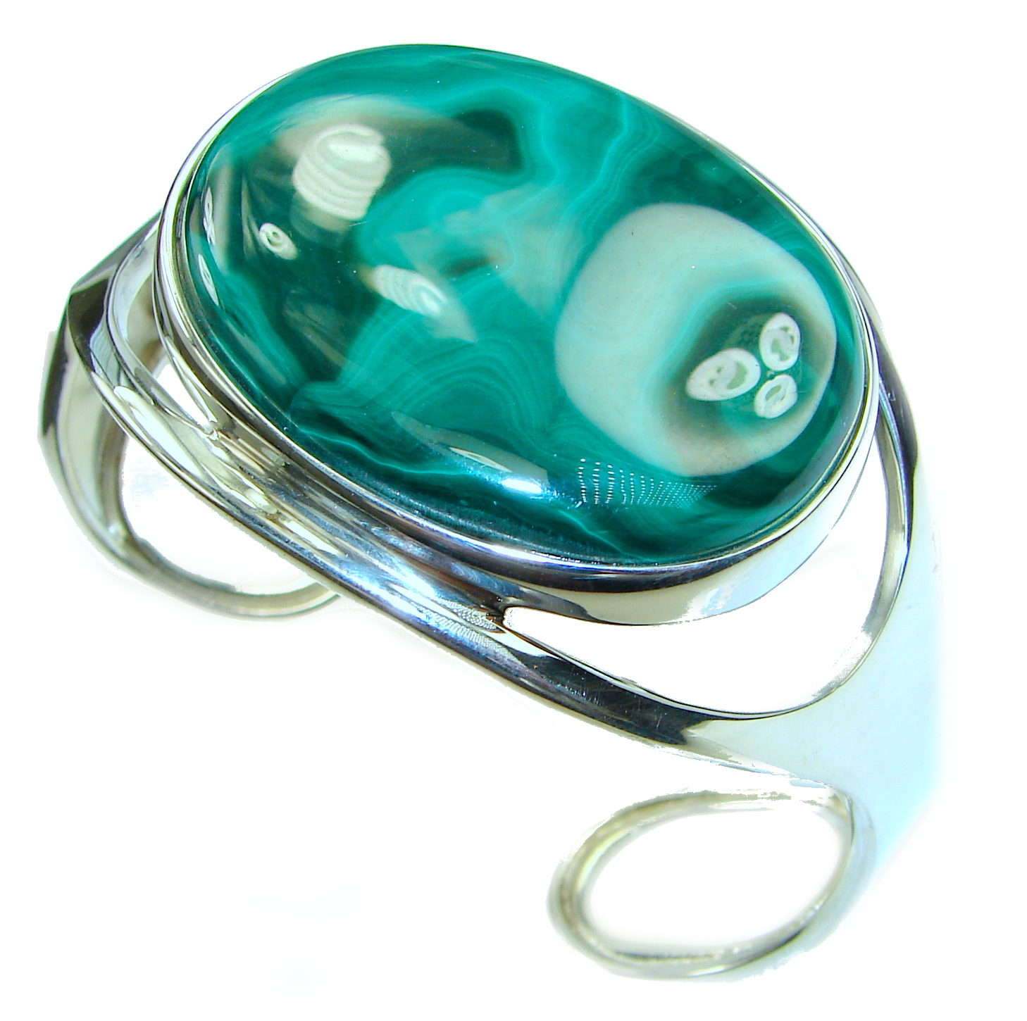 Eternal Paradise 64.8 grams Natural Malachite highly polished .925 Sterling Silver handcrafted Bracelet / Cuff