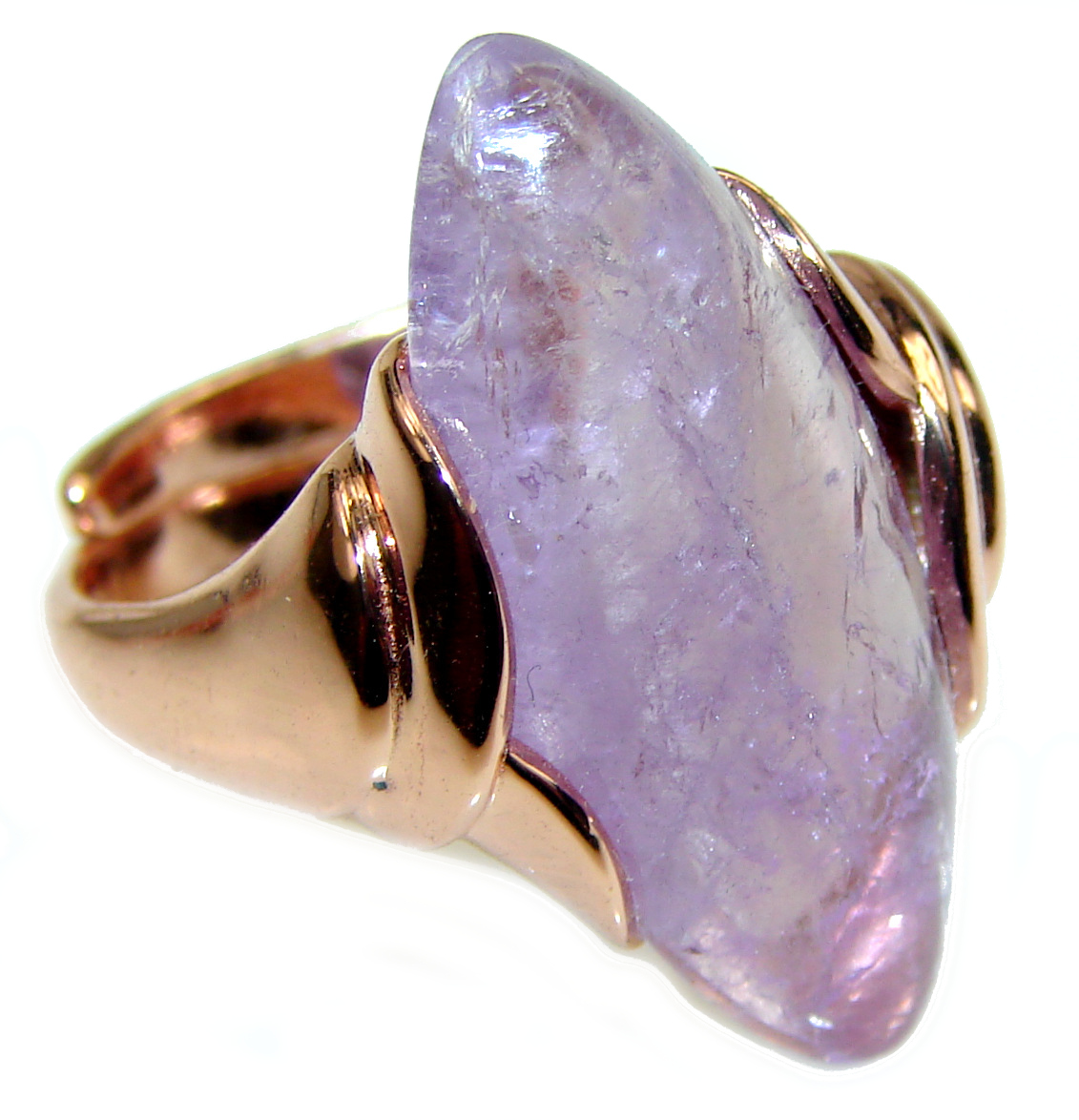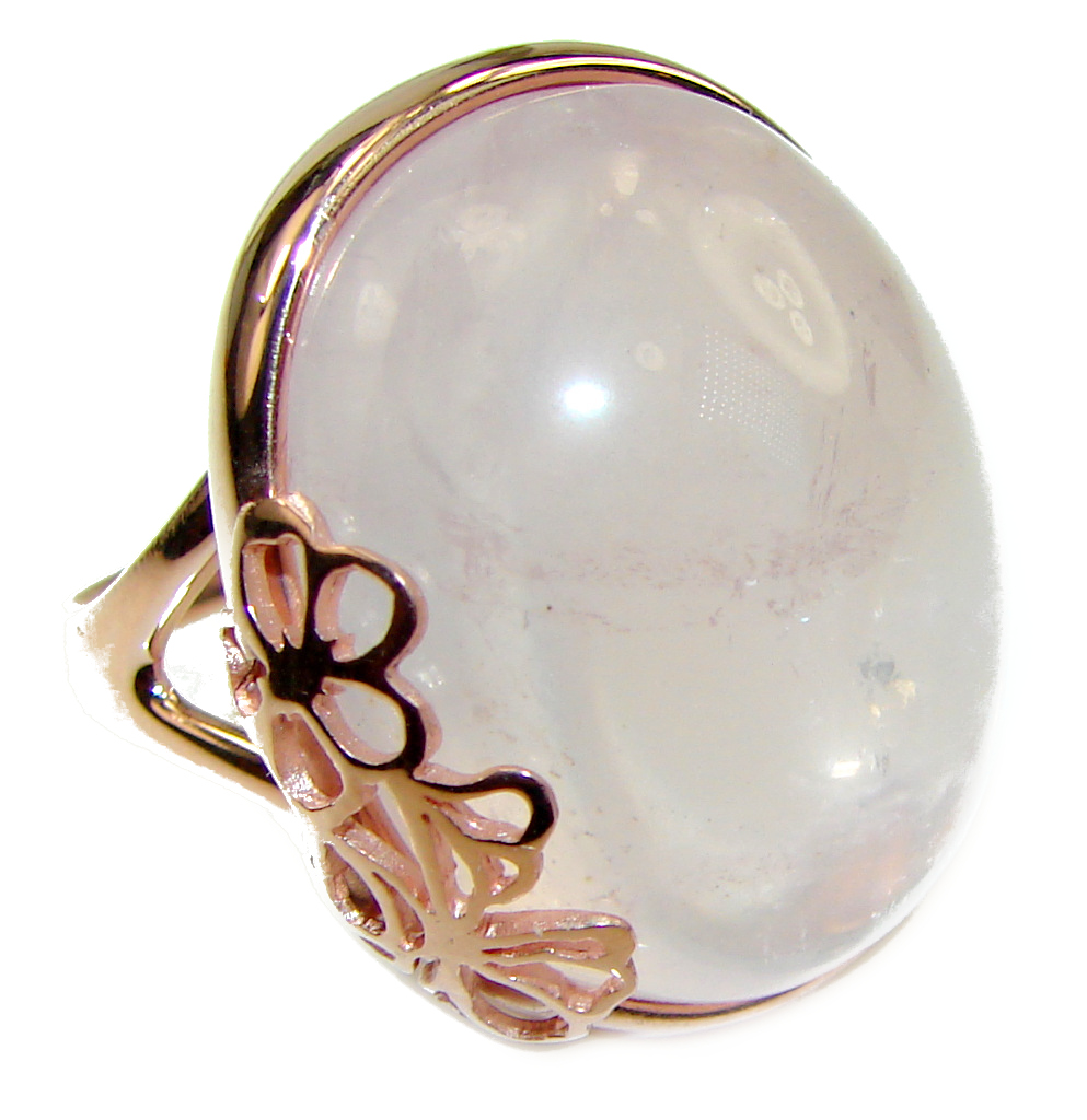 Large 15.2 carat Rose Quartz 14K Gold over .925 Sterling Silver brilliantly handcrafted ring s. 7 1/4