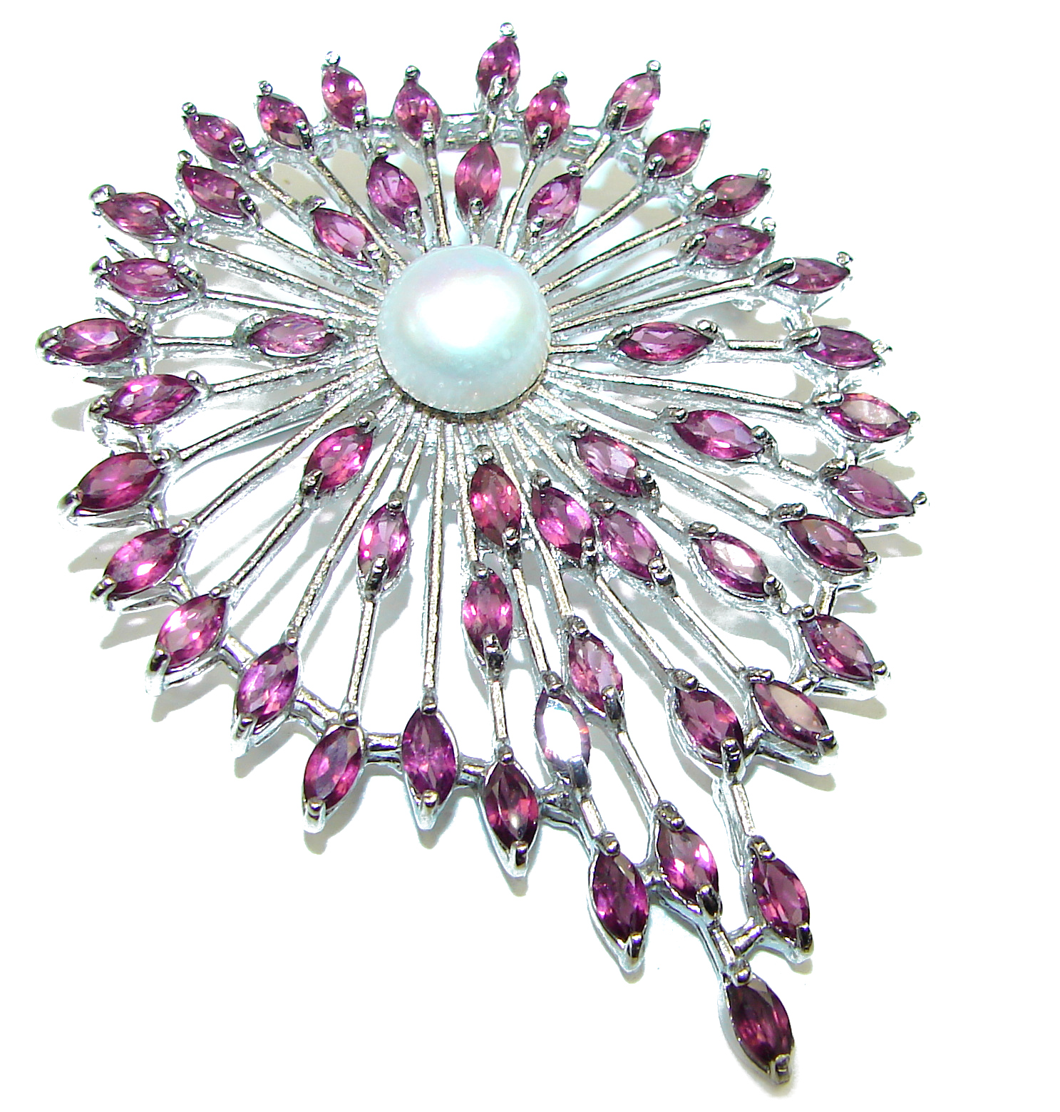 Classy Beauty genuine Pearl Garnet .925 Sterling Silver handmade Pendant - Brooch