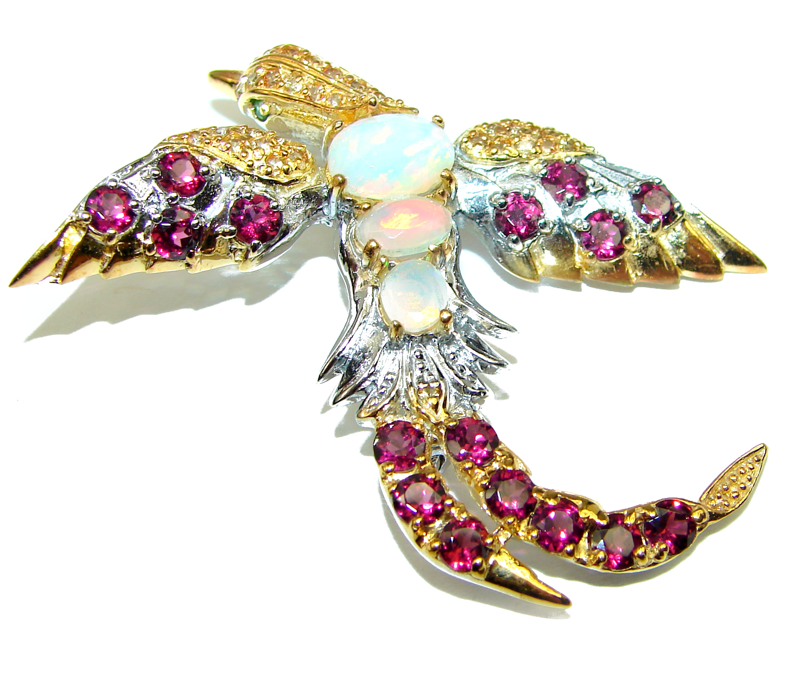 Incredible Flaying Bird Natural Ethiopian Opal 2 TONES .925 Sterling Silver Brooch