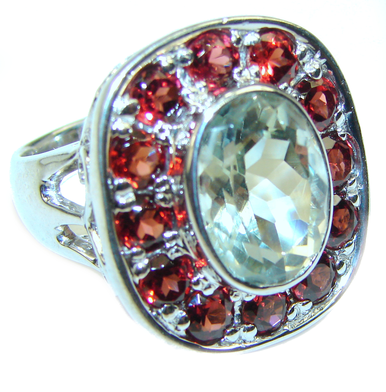Genuine Green Amethyst .925 Sterling Silver handcrafted ring size 8 1/4