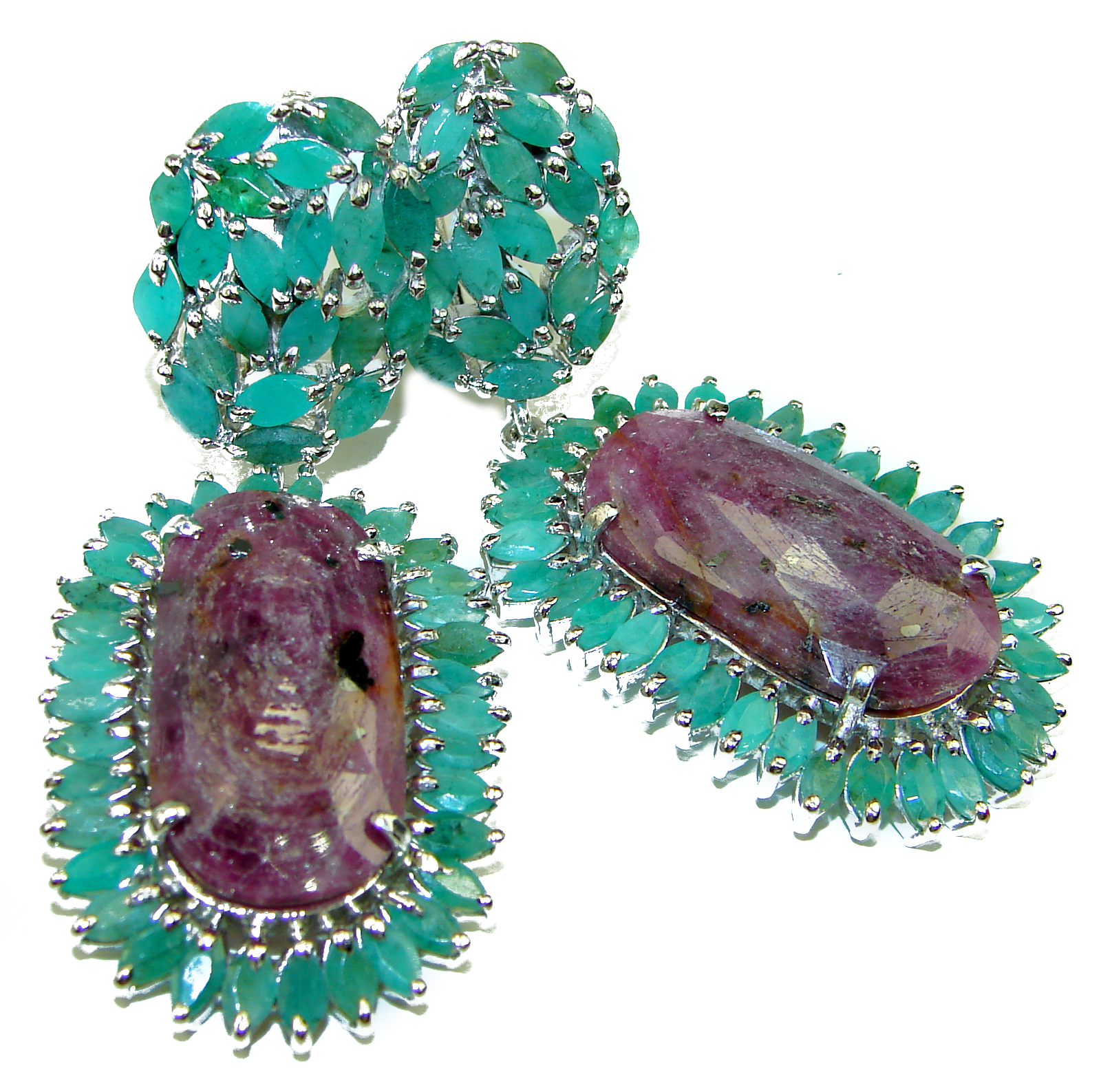 Spectacular natural Ruby Emerald .925 Sterling Silver handcrafted HUGE earrings