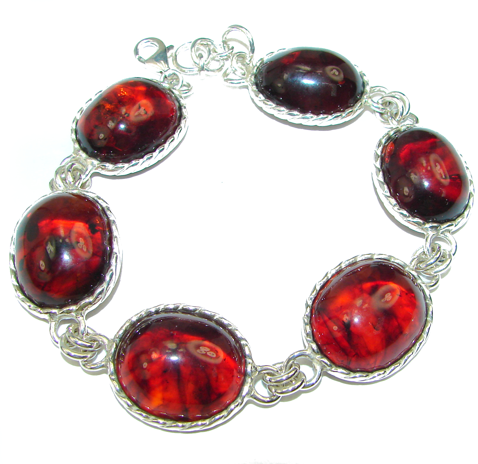 HUGE Beautiful Amber .925 Sterling Silver handcrafted Bracelet