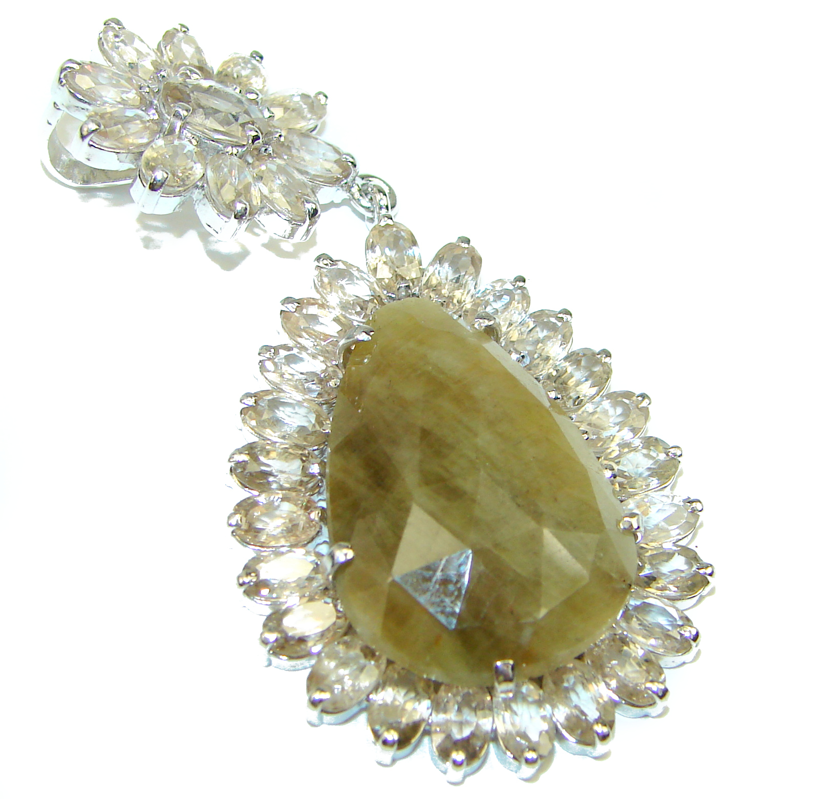 Exclusive yellow Sapphire Champagne Topaz .925 Sterling Silver pendant Large Pendant