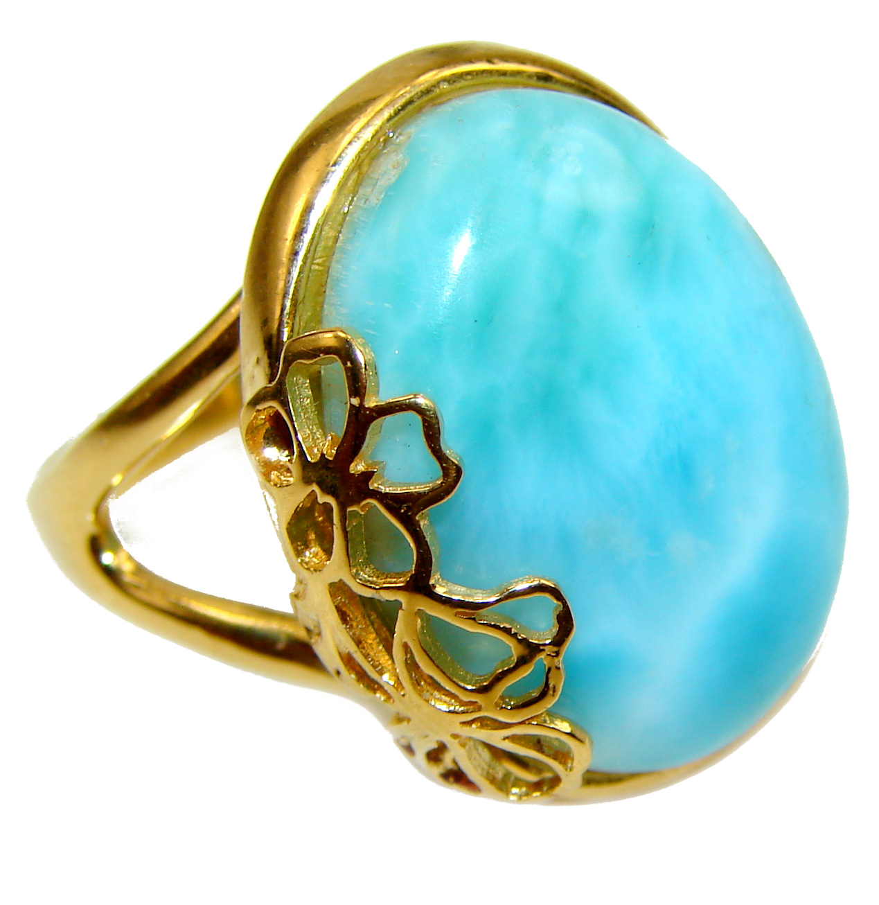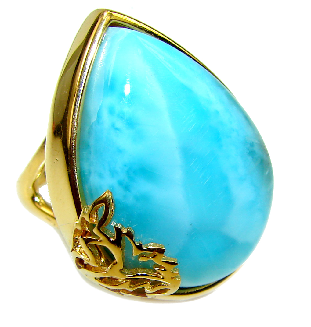 11.4 carat Larimar 18K Gold over .925 Sterling Silver handcrafted Ring s. 7 3/4