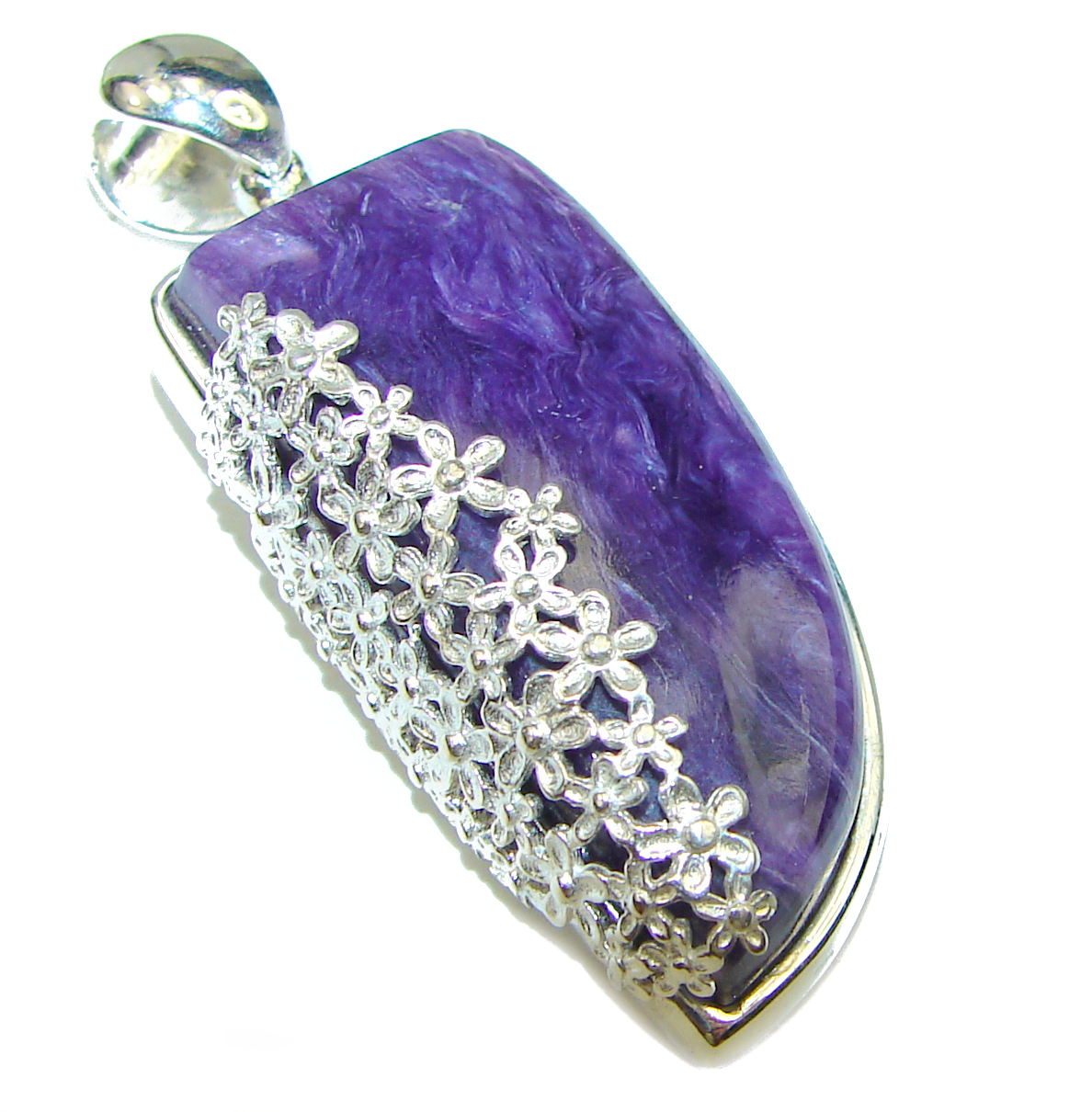 Natural Charoite .925 Sterling Silver handcrafted pendant