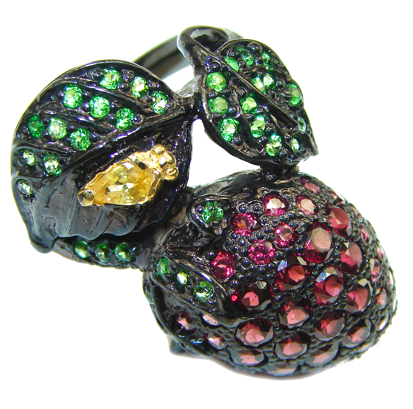 Sweet Strawberry Genuine Garnet 18K Gold over .925 Sterling Silver handmade Cocktail Ring s. 8