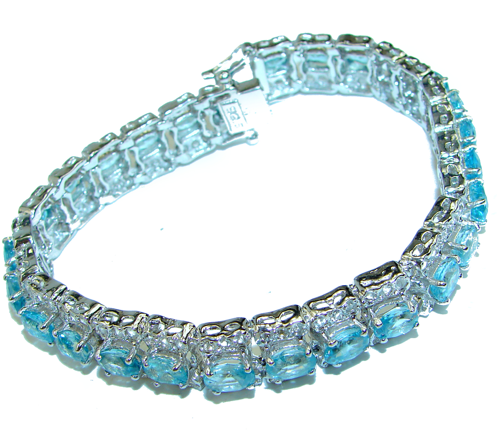 Ocean Inspired genuine Larimar Swiss Blue Topaz .925 Sterling Silver handcrafted Statement Bracelet
