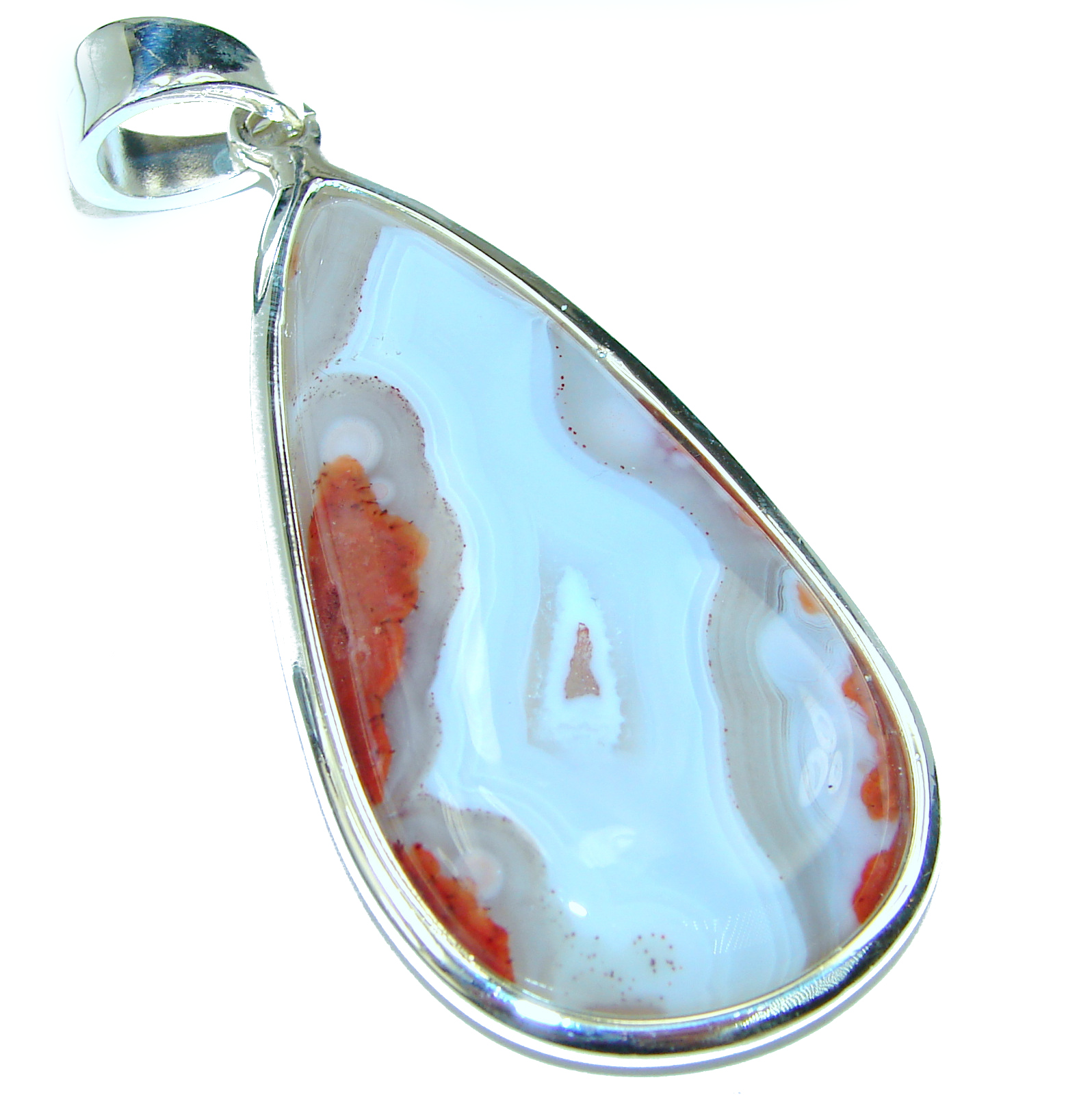 Amazing genuine Crazy Lace Agate .925 Sterling Silver handmade Pendant