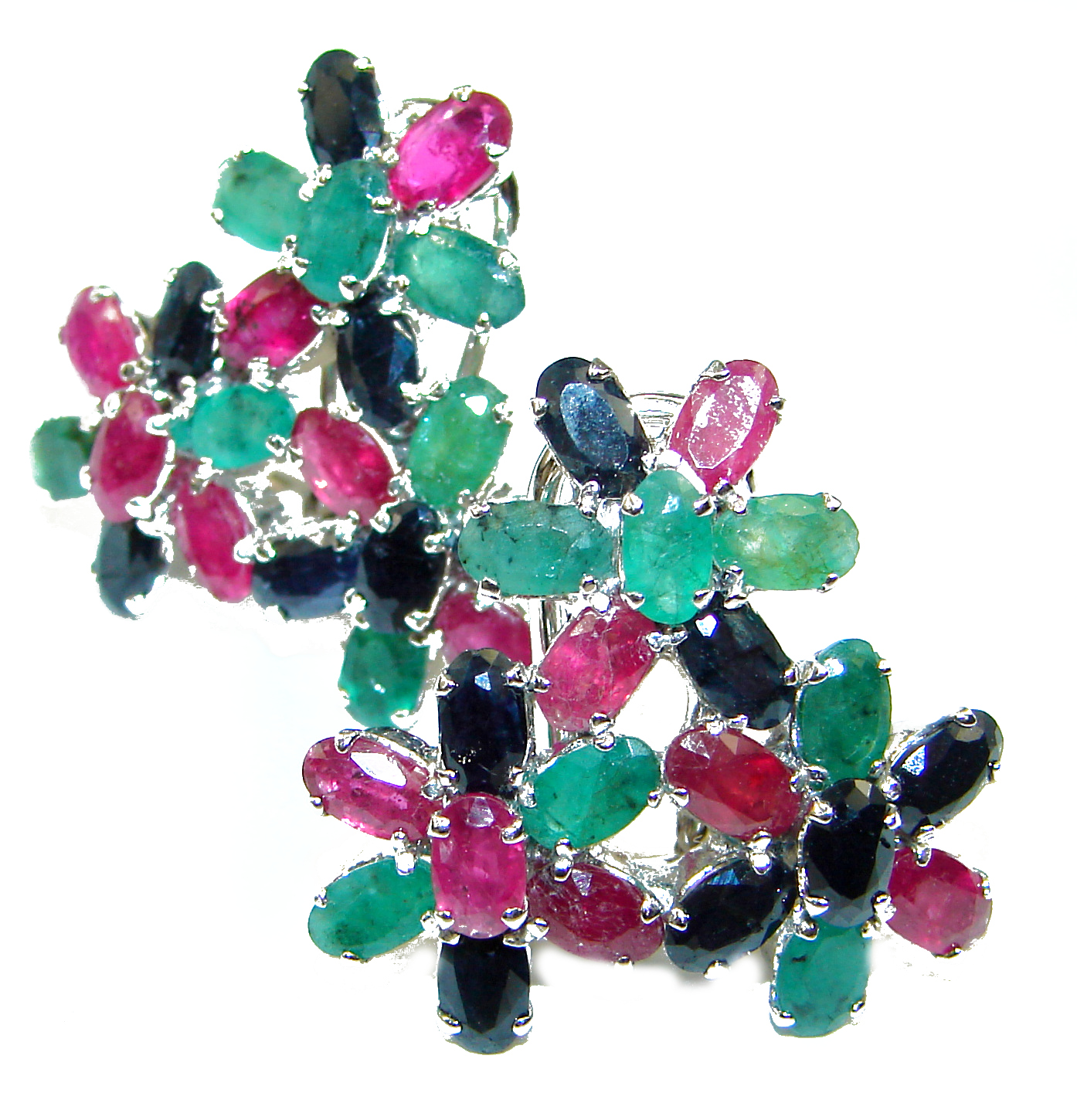 Ruby Emerald Sapphire .925 Sterling Silver .925 Sterling Silver handcrafted earrings
