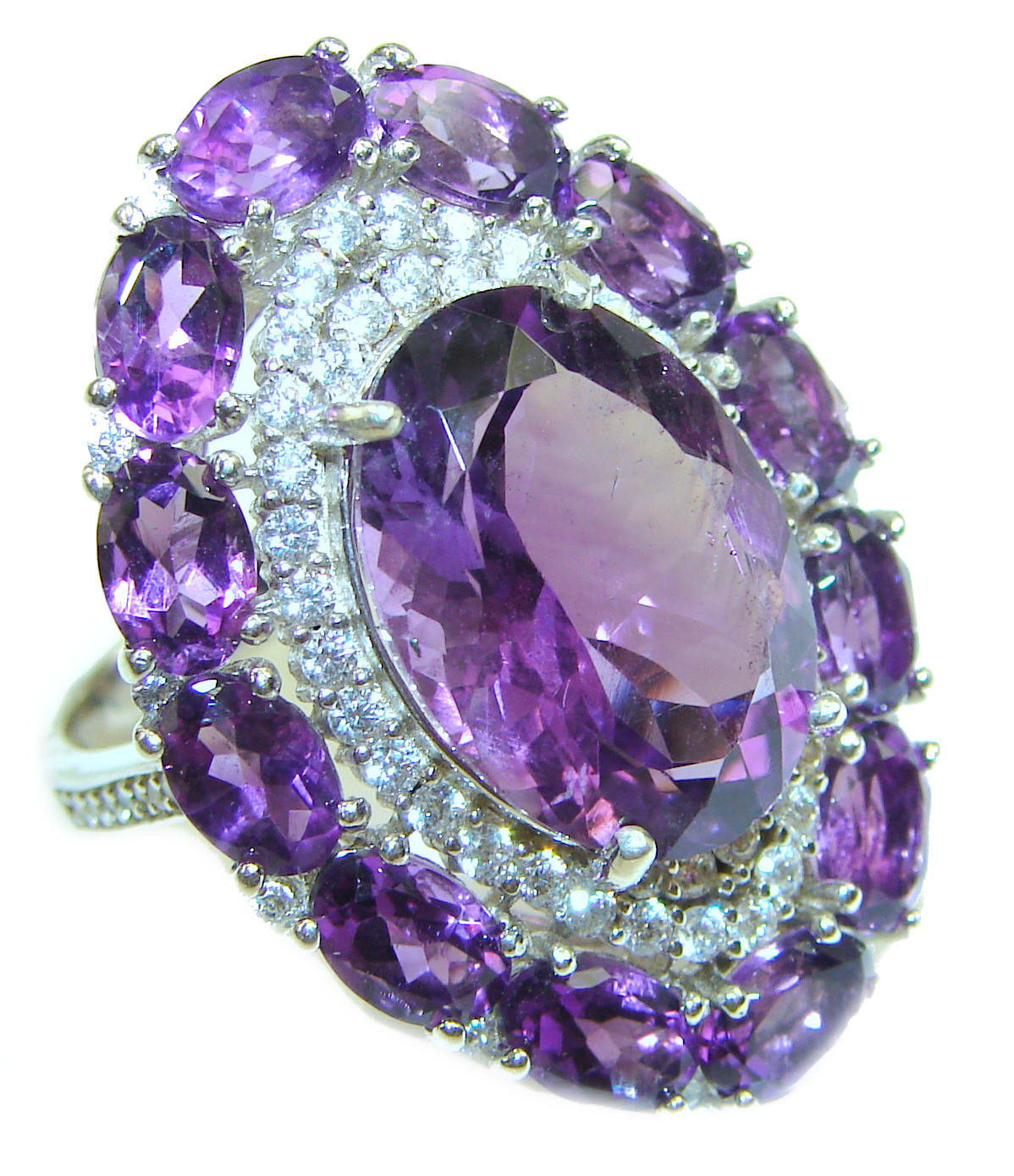 Spectacular genuine Amethyst .925 Sterling Silver Handcrafted Ring size 7 1/4