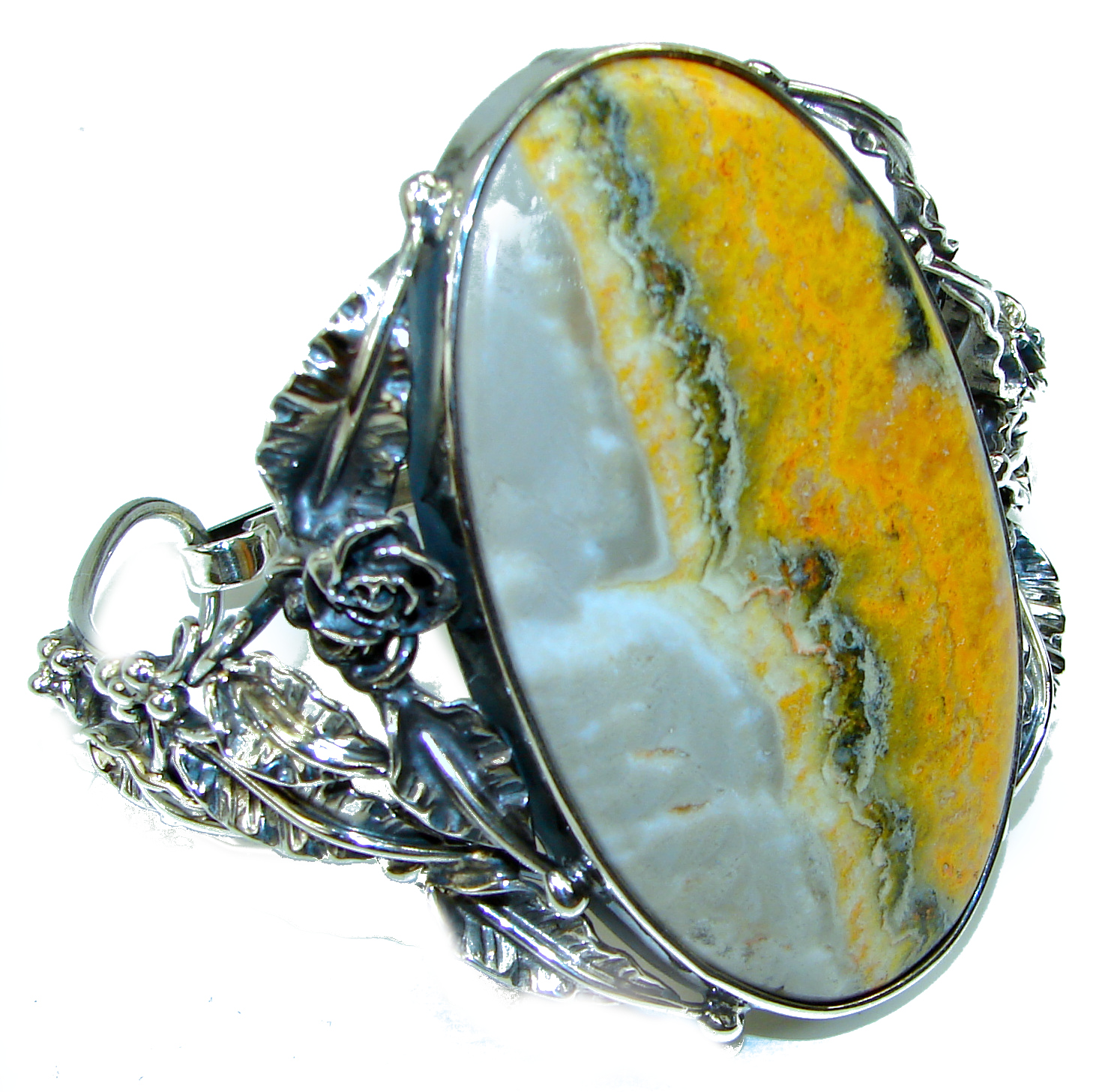 Excelelnt quality Rainforest Jasper .925 Sterling Silver handcrafted Statement Bracelet / Cuff