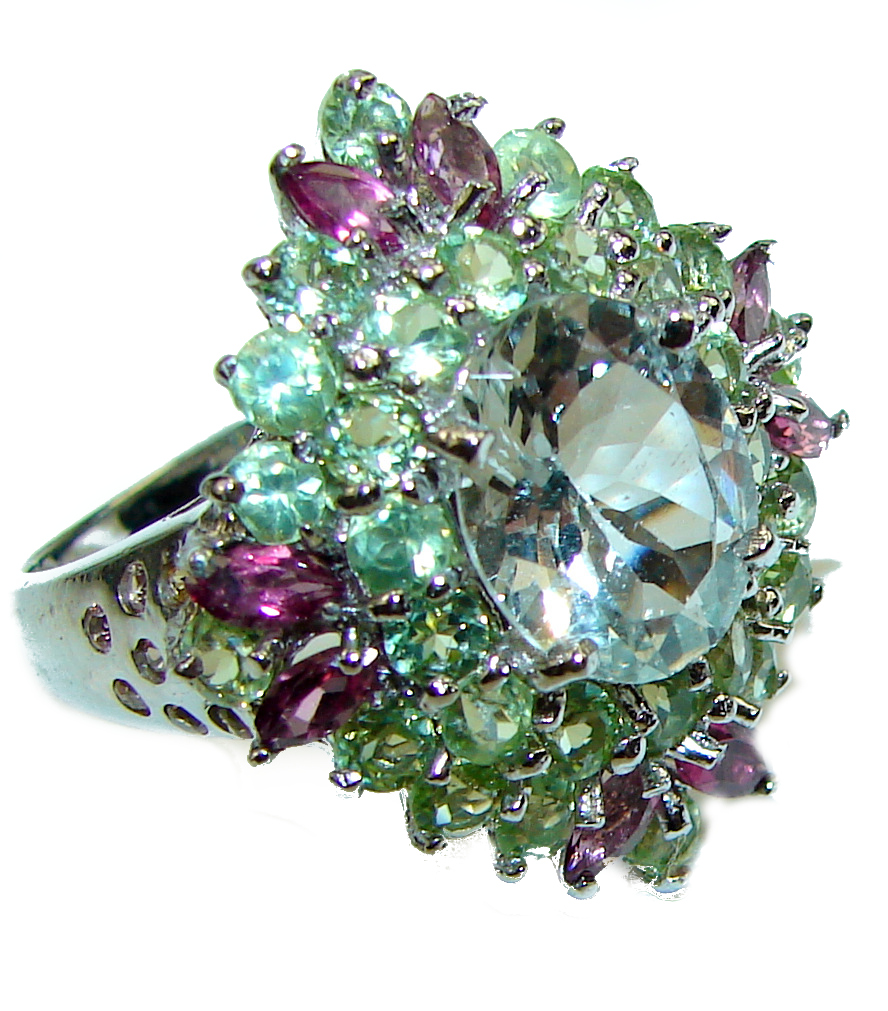 Genuine Green Amethyst .925 Sterling Silver handcrafted ring size 7 1/4