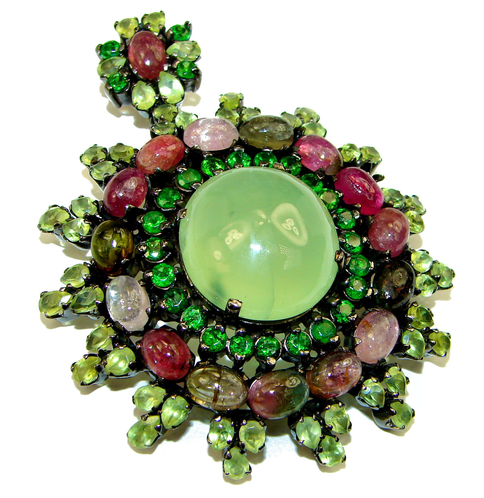 Gabriella Deluxe Prehnite Black Rhodium over .925 Sterling Silver handmade LARGE Pendant Brooch