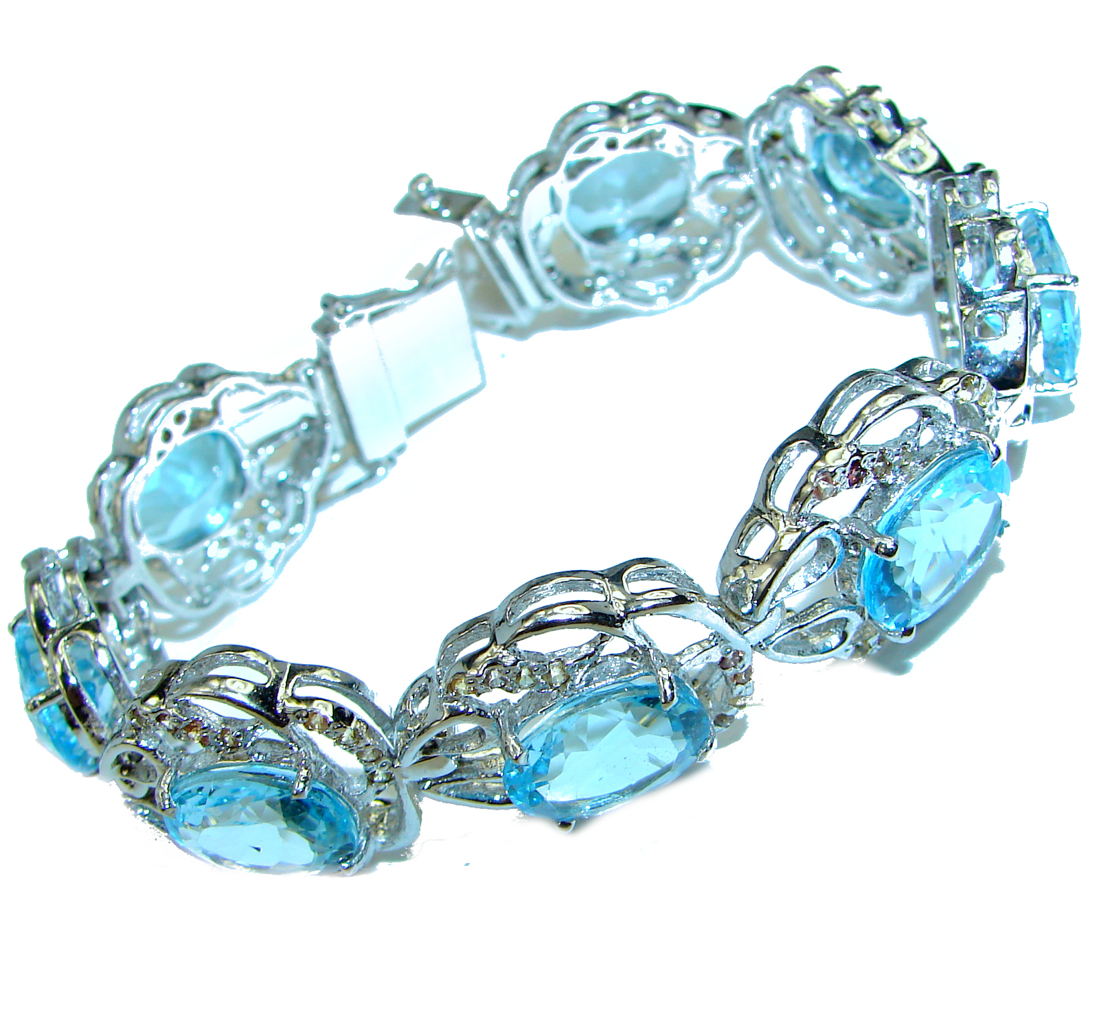 Ocean Inspired genuine Larimar Swiss Blue Topaz .925 Sterling Silver handcrafted Statement Bracelet