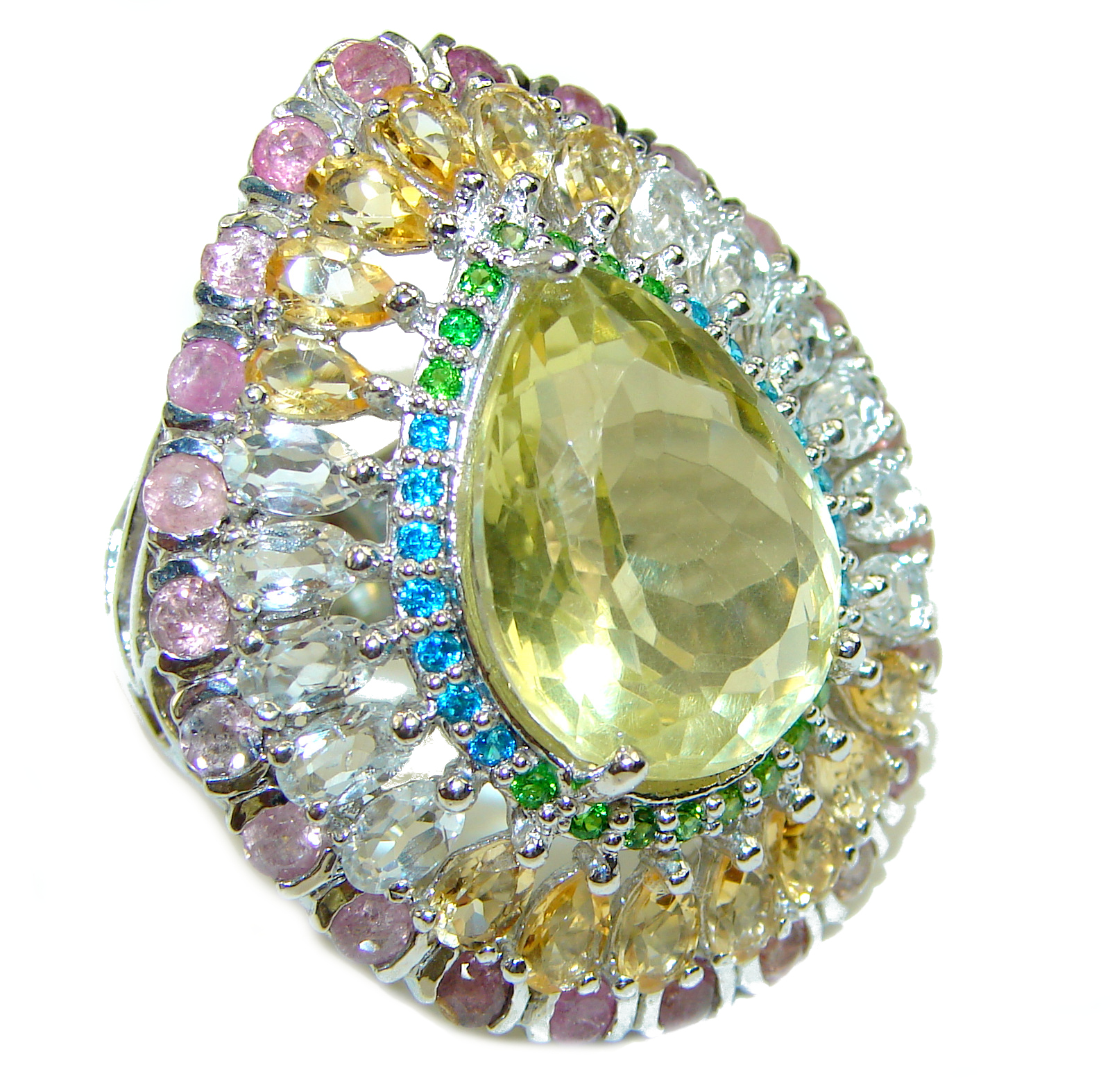 Royal Style Citrine .925 Sterling Silver handmade Cocktail Ring s. 8 1/4