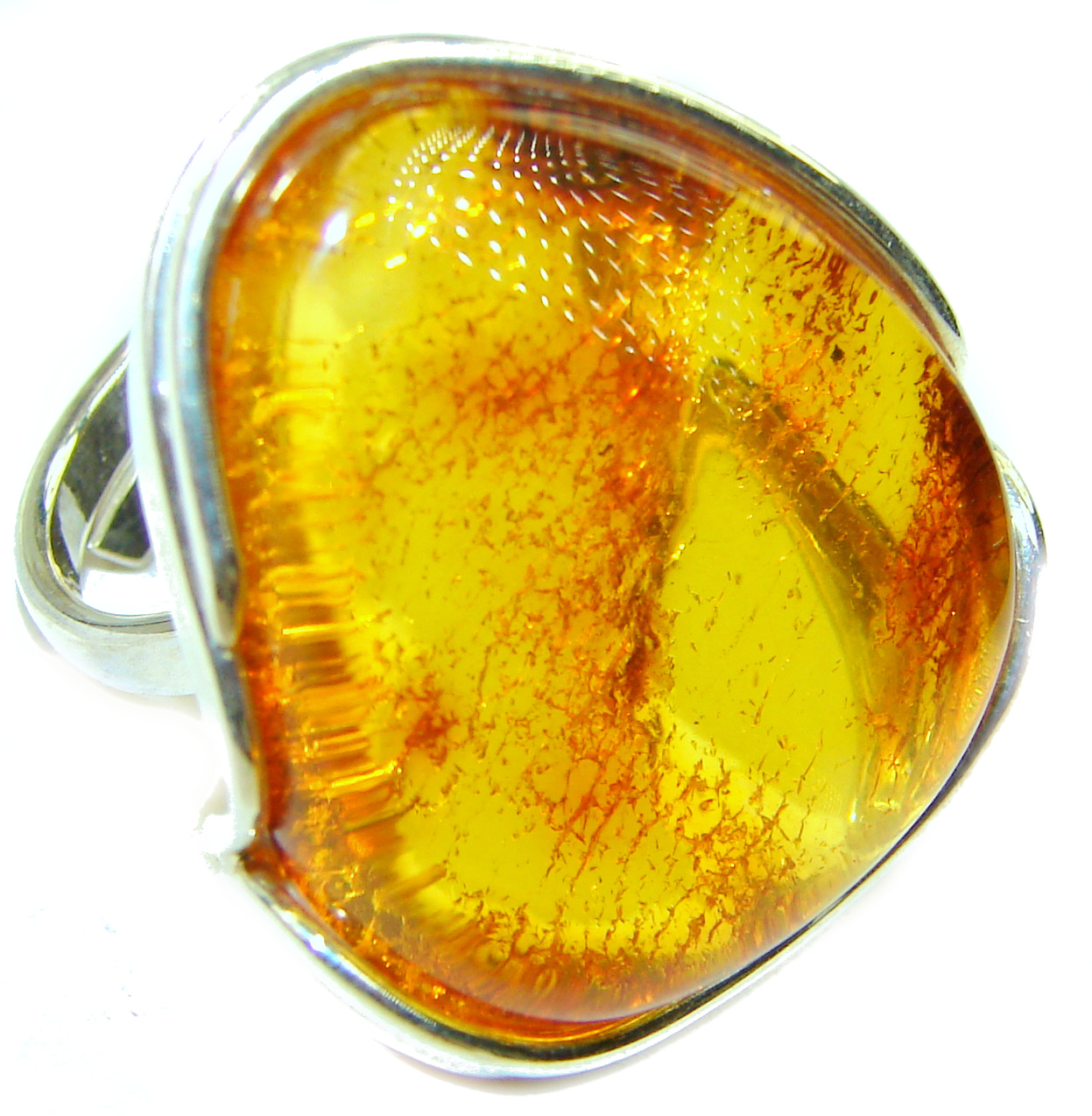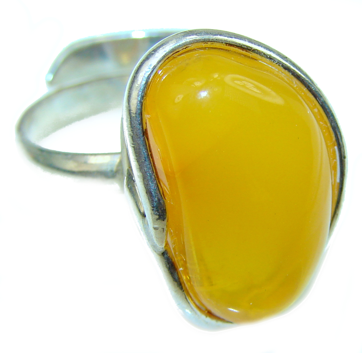 Authentic Baltic Amber .925 Sterling Silver handcrafted ring; s. 8 adjustable