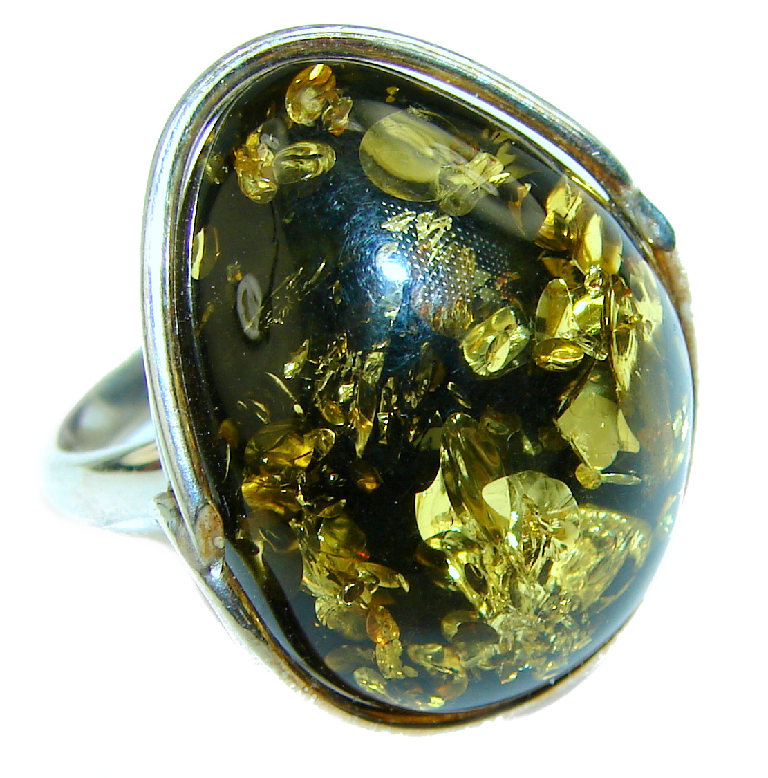 Authentic Baltic Amber .925 Sterling Silver handcrafted ring; s. 7 adjustable