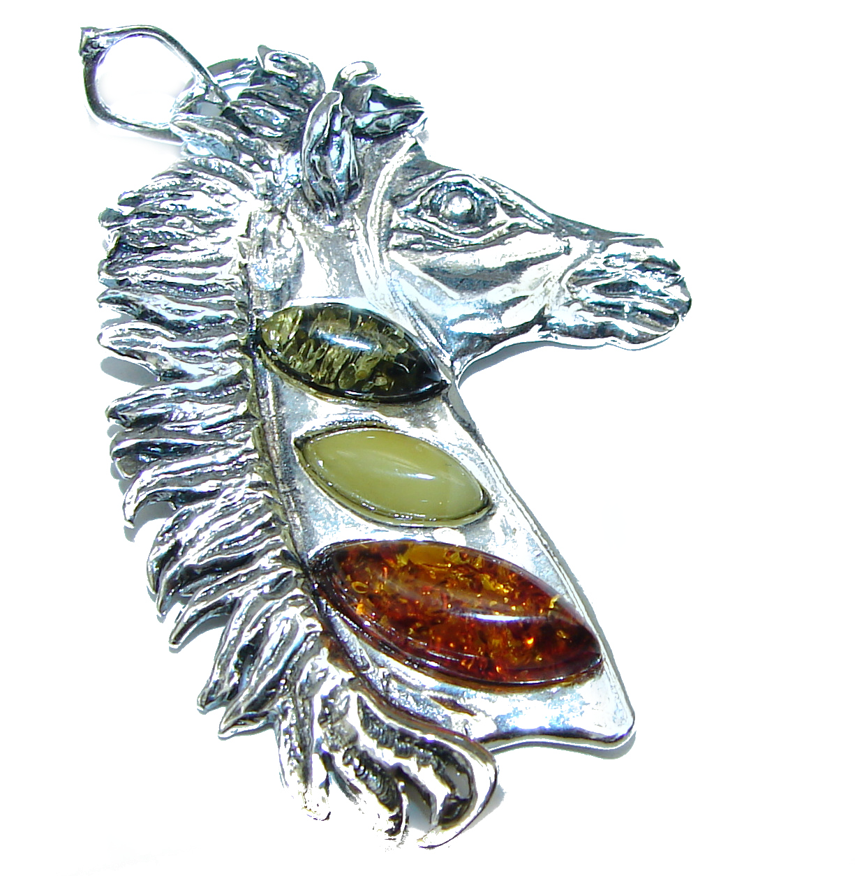 Masterpiece Horse Baltic Polish Amber .925 Sterling Silver Handmade Pendant