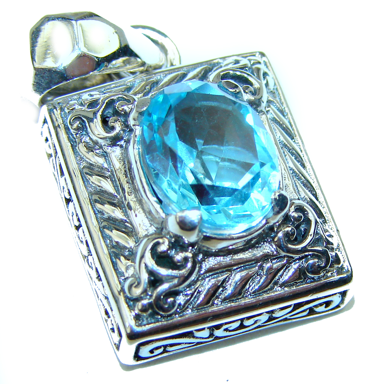 Genuine Swiss Blue Topaz .925 Sterling Silver handmade pendant