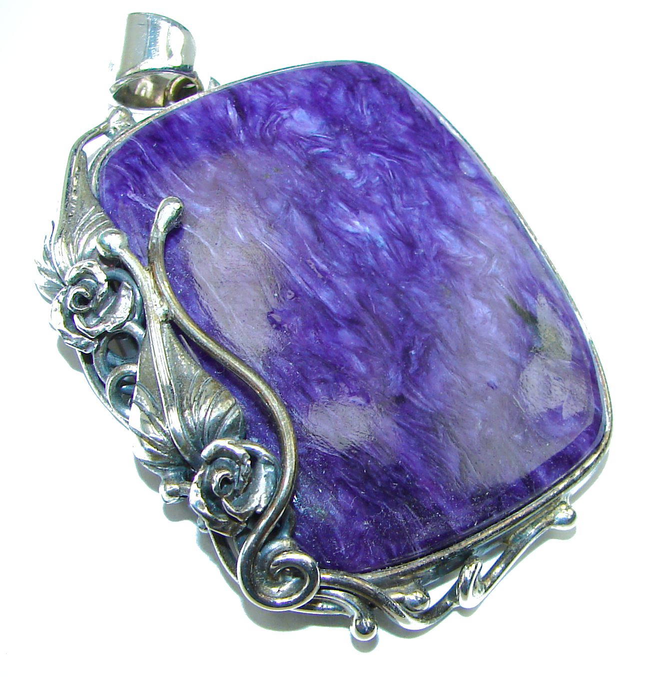 Natural Charoite .925 Sterling Silver handcrafted pendant