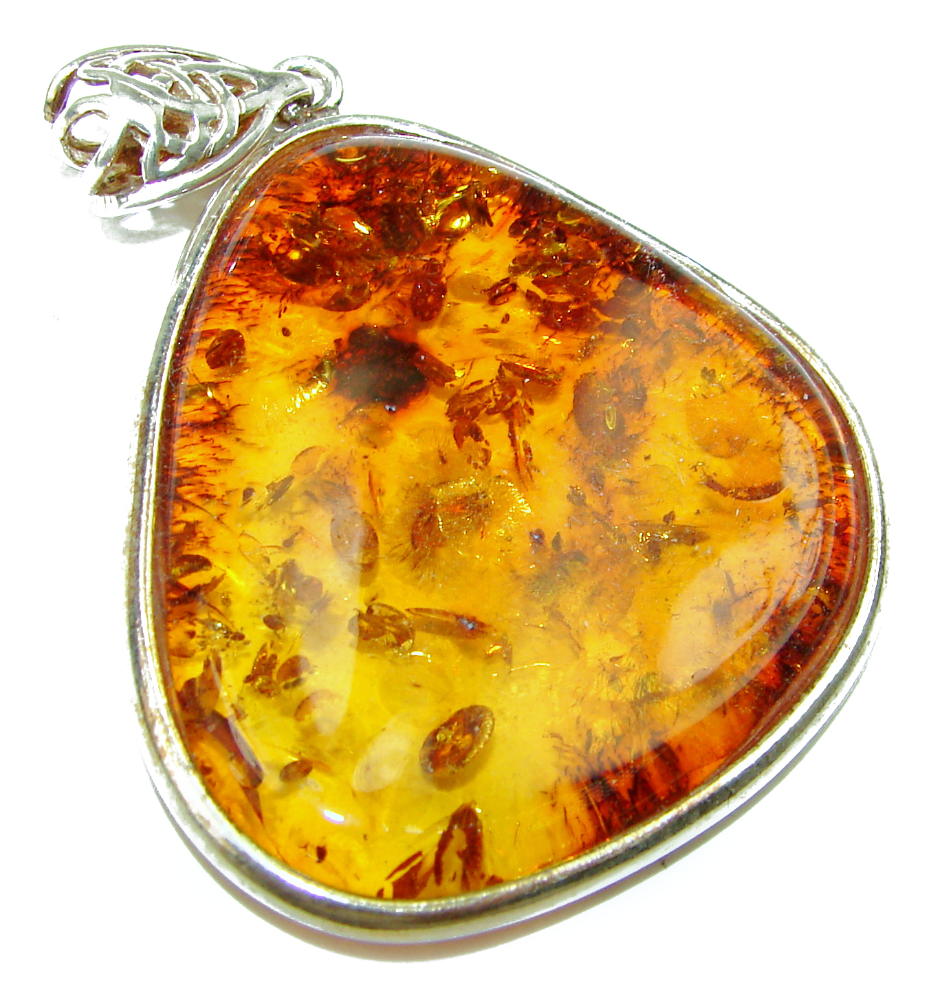 Large Natural Baltic Amber .925 Sterling Silver handmade Pendant