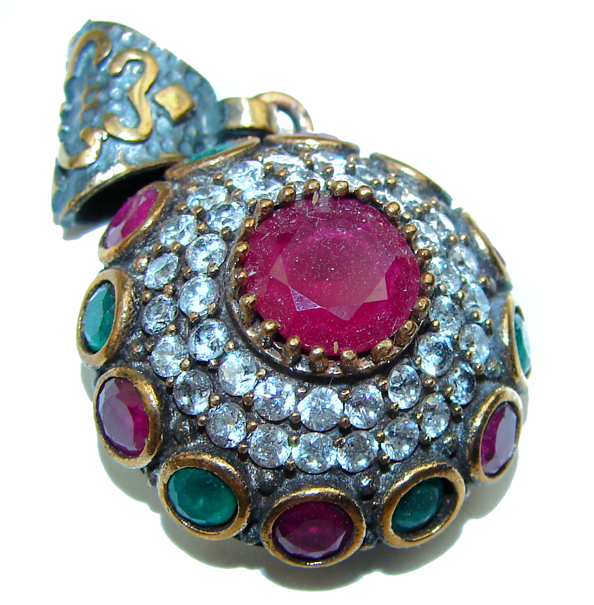 Precious created Ruby .925 Sterling Silver handmade Pendant