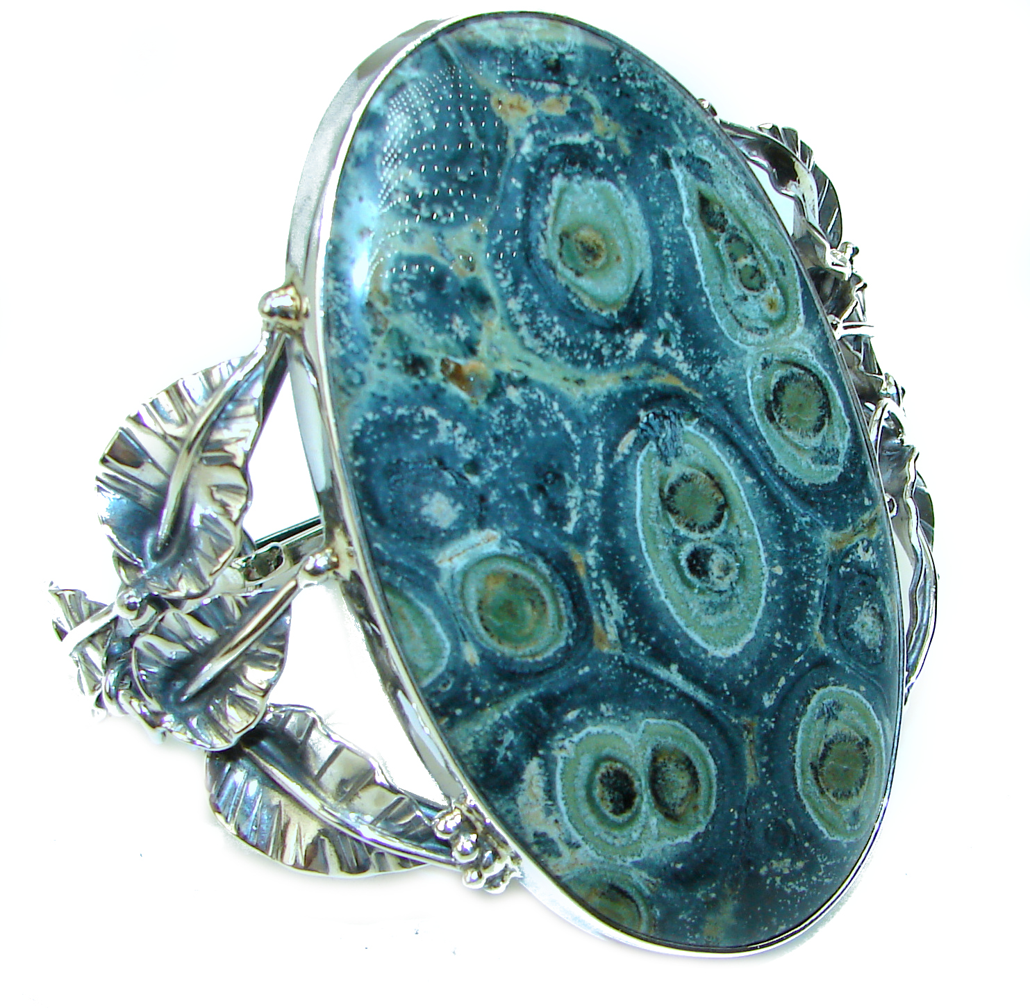 Beautiful Fine Art Natural Rhyolite .925 Sterling Silver bracelet Bangle