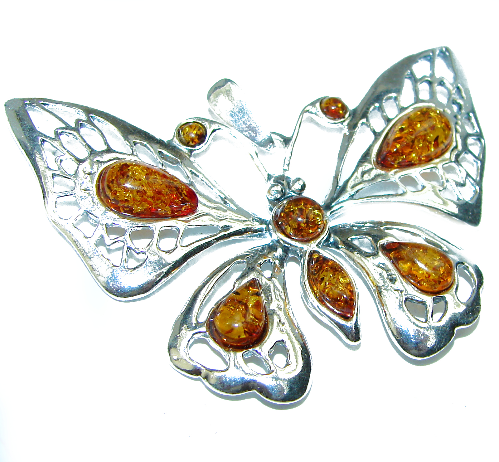 Big Butterfly Baltic Polish Amber .925 Sterling Silver handcrafted Pendant