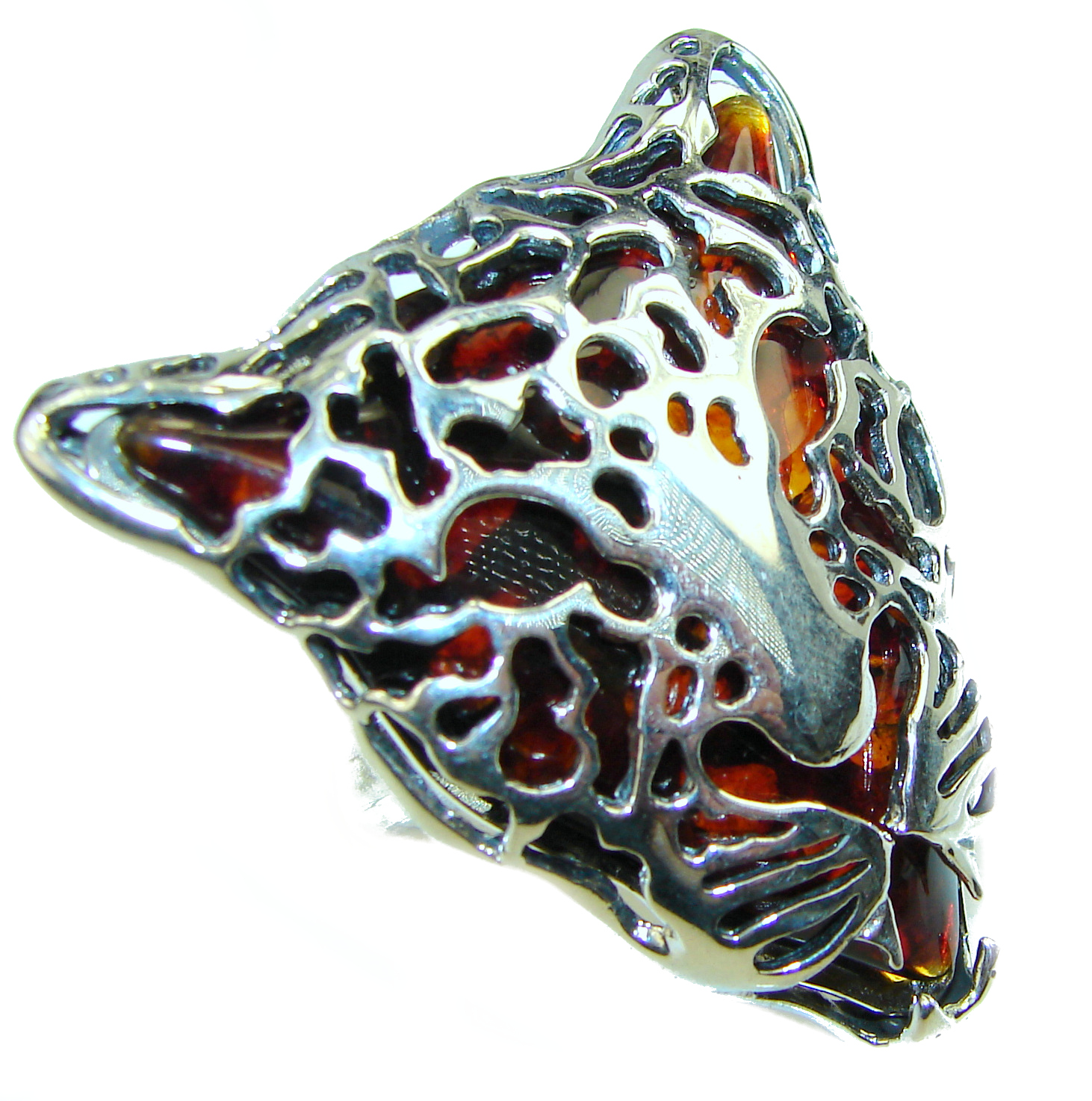 Gephard authentic Baltic Amber .925 Sterling Silver handmade Statement Ring s. 7 adjustable