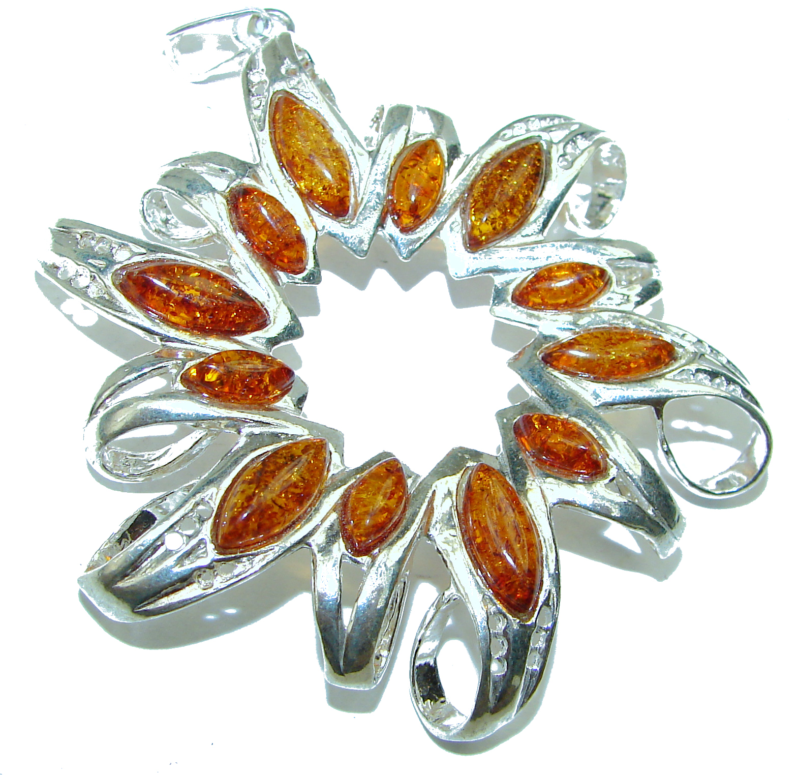 Huge Natural Baltic Amber .925 Sterling Silver handmade Pendant