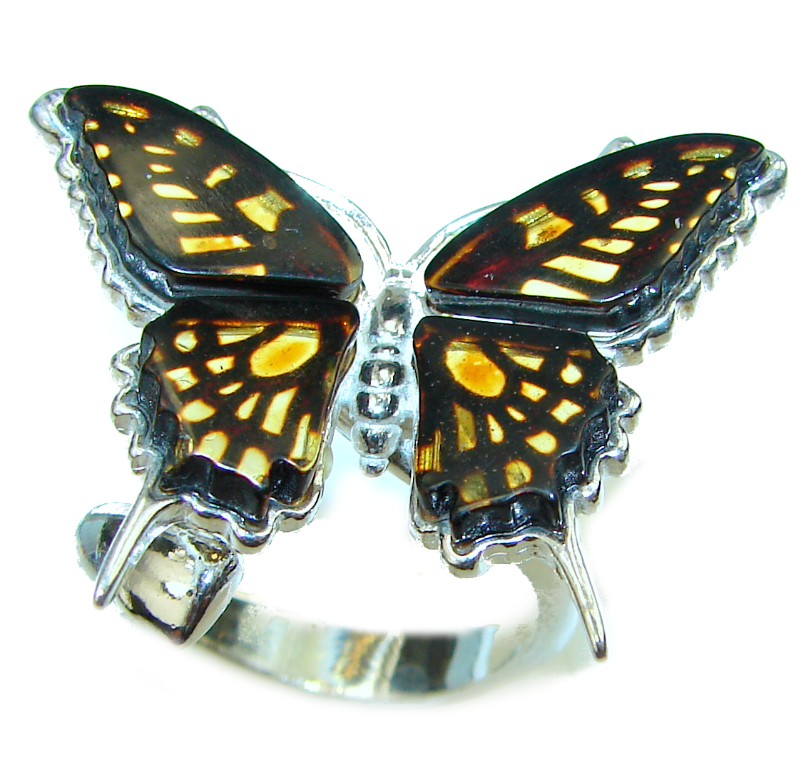 Butterfly Authentic Baltic Amber .925 Sterling Silver handcrafted ring; s. 8 adjustable