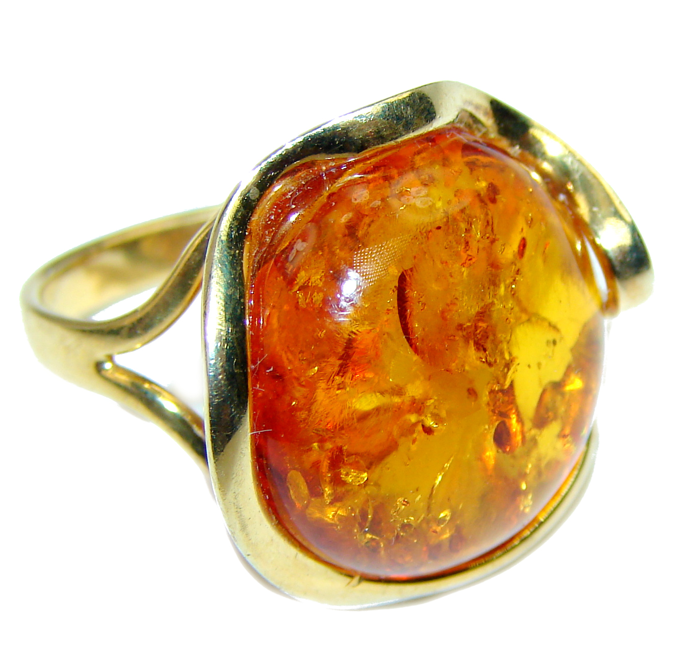 Authentic Baltic Amber 14K Gold over .925 Sterling Silver handcrafted ring; s. 7 adjustable